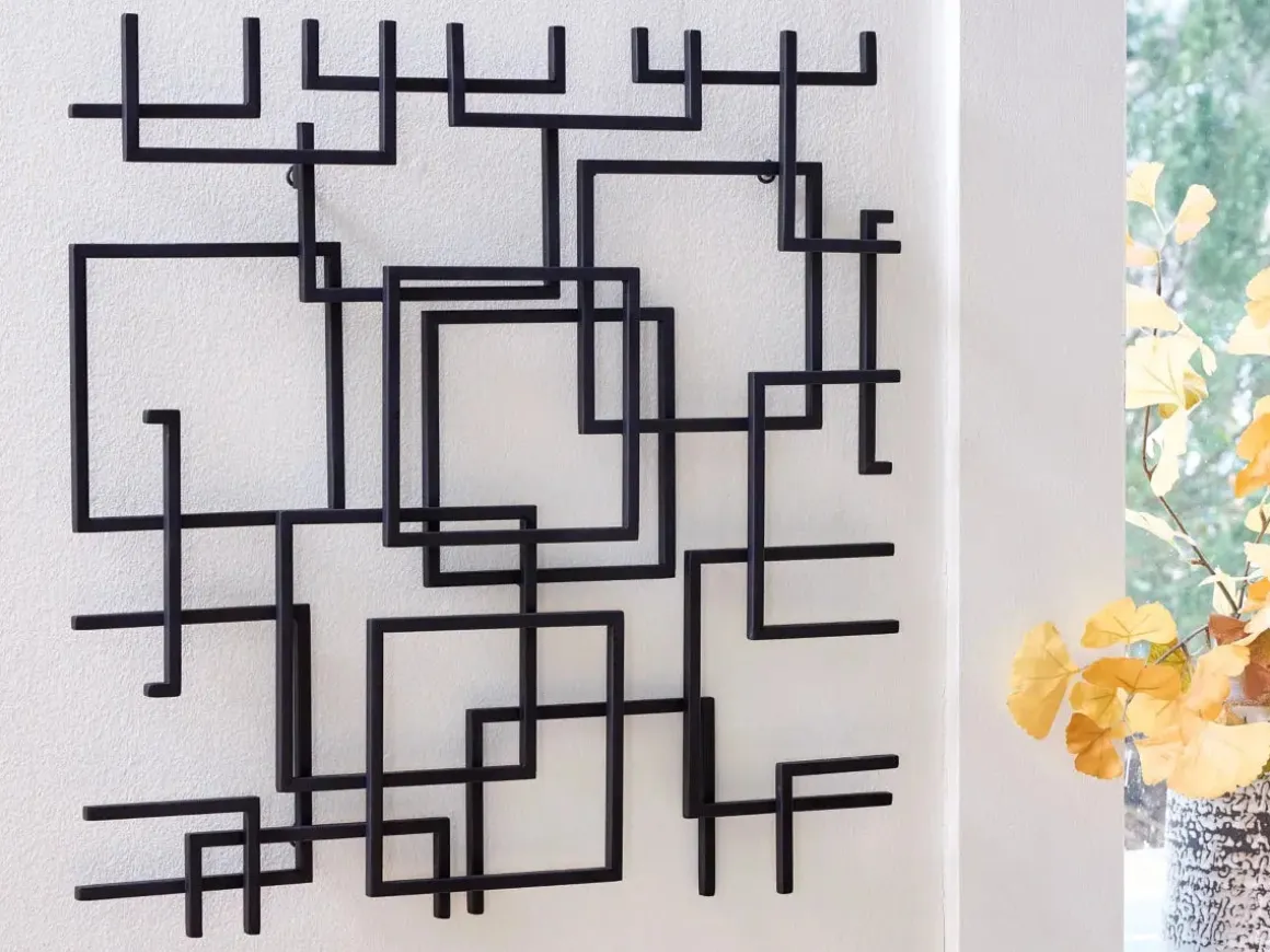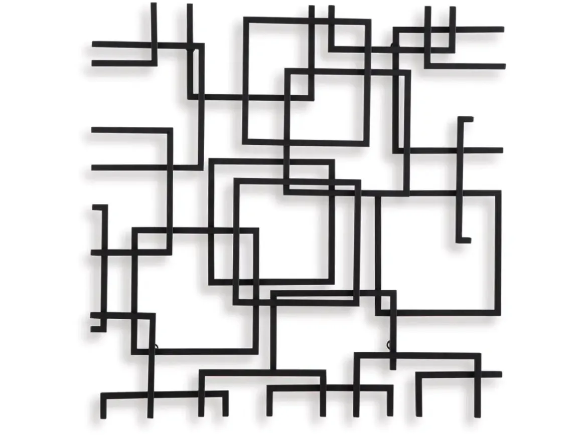 Ponder upon the abstract Aadanton Wall Art in Black. With its clean black lines, and sharp angles from its combination of squares and lines, this accent piece is a fantastic way to add depth and contrast to any room or empty wall. Hidden brackets allow you to mount this piece anyway you like while keeping the appearance clean.