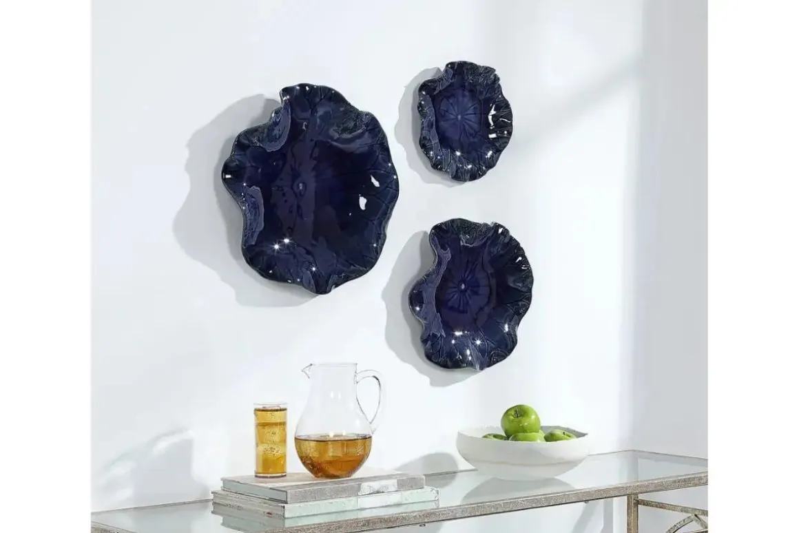 Abella Ceramic Wall Art In Blue, Set Of 3