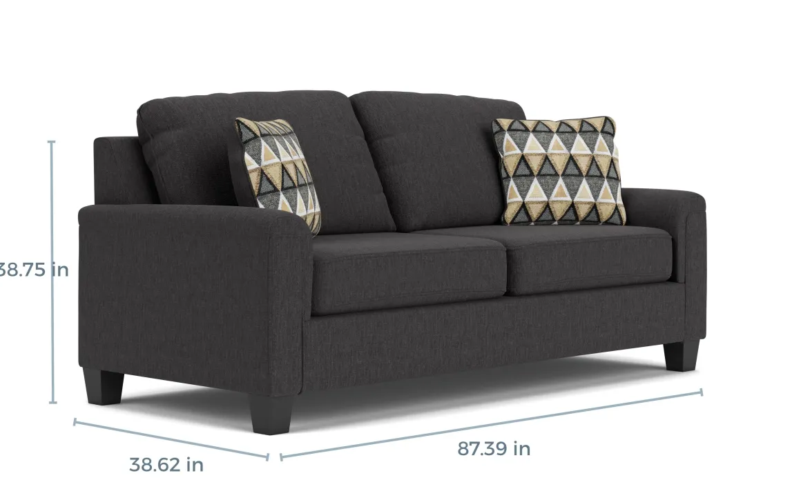 When you want your living room to be calm, cool, and classy, you want the Abinger Sofa in Smoke. Made for stylish spaces, this sofa has a dark fabric finish that will look good with your existing decor and style. The comfortable foam seat cushions make it an inviting place to sit and have a coffee and conversation. Cozy up with a good book on your fabulous sofa that will never go out of fashion.