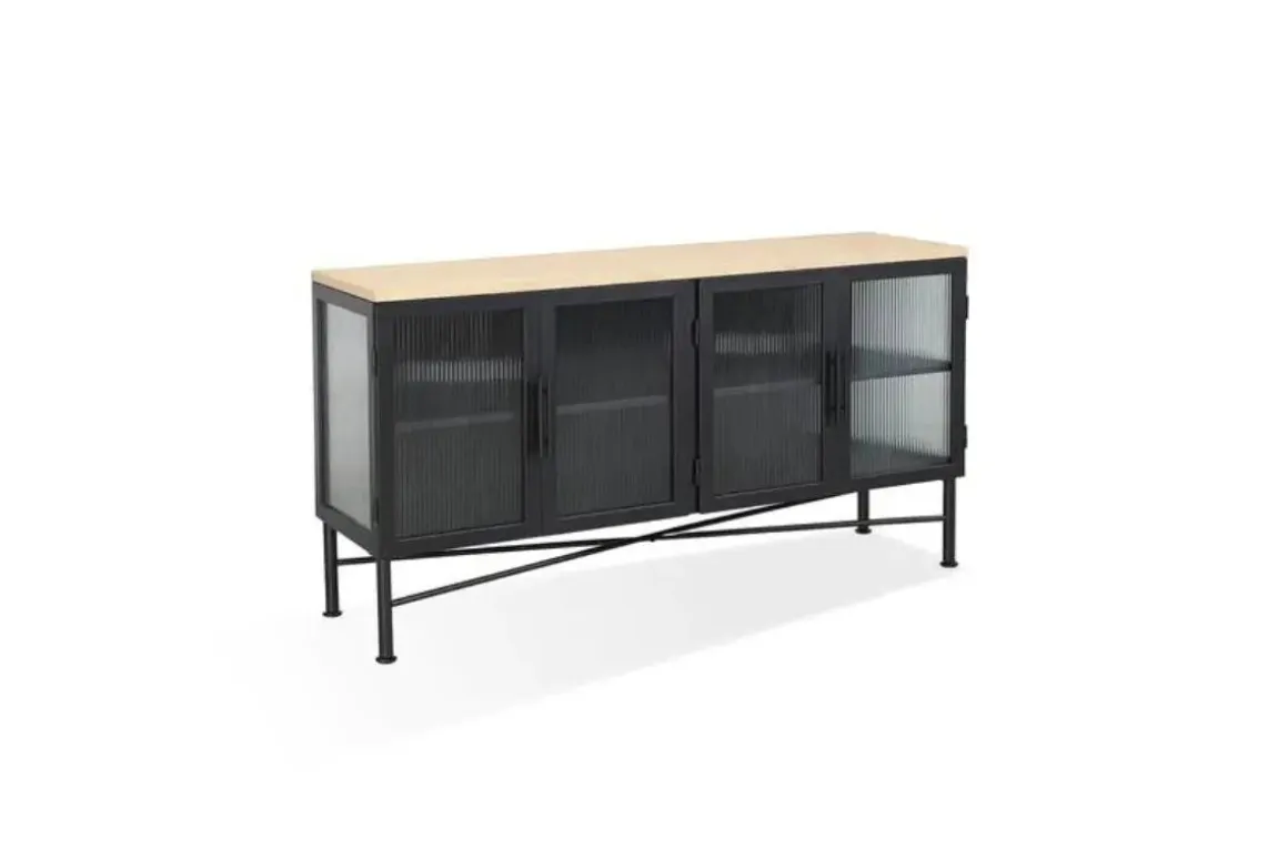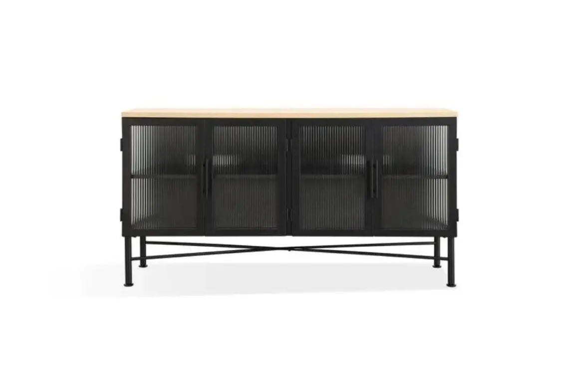 The Aere Sideboard in Natural Ash is a modern and sleek storage solution, perfect for contemporary living spaces. With its clean lines and neutral natural ash finish, this sideboard will complement any home decor. This stylish sideboard boasts full-extension drawer glides for easy access to belongings and English Dovetail drawer joint construction for added strength. The 5.6-inch floor clearance offers protection for your floors. Standing at 36 inches tall, this piece provides ample storage without overwhelming your space.Product Details: • The metal frame ensures stability and sturdiness • The sturdy English Dovetail drawer joints provide strength and durability • Enjoy easy access to your belongings with the smooth gliding drawers