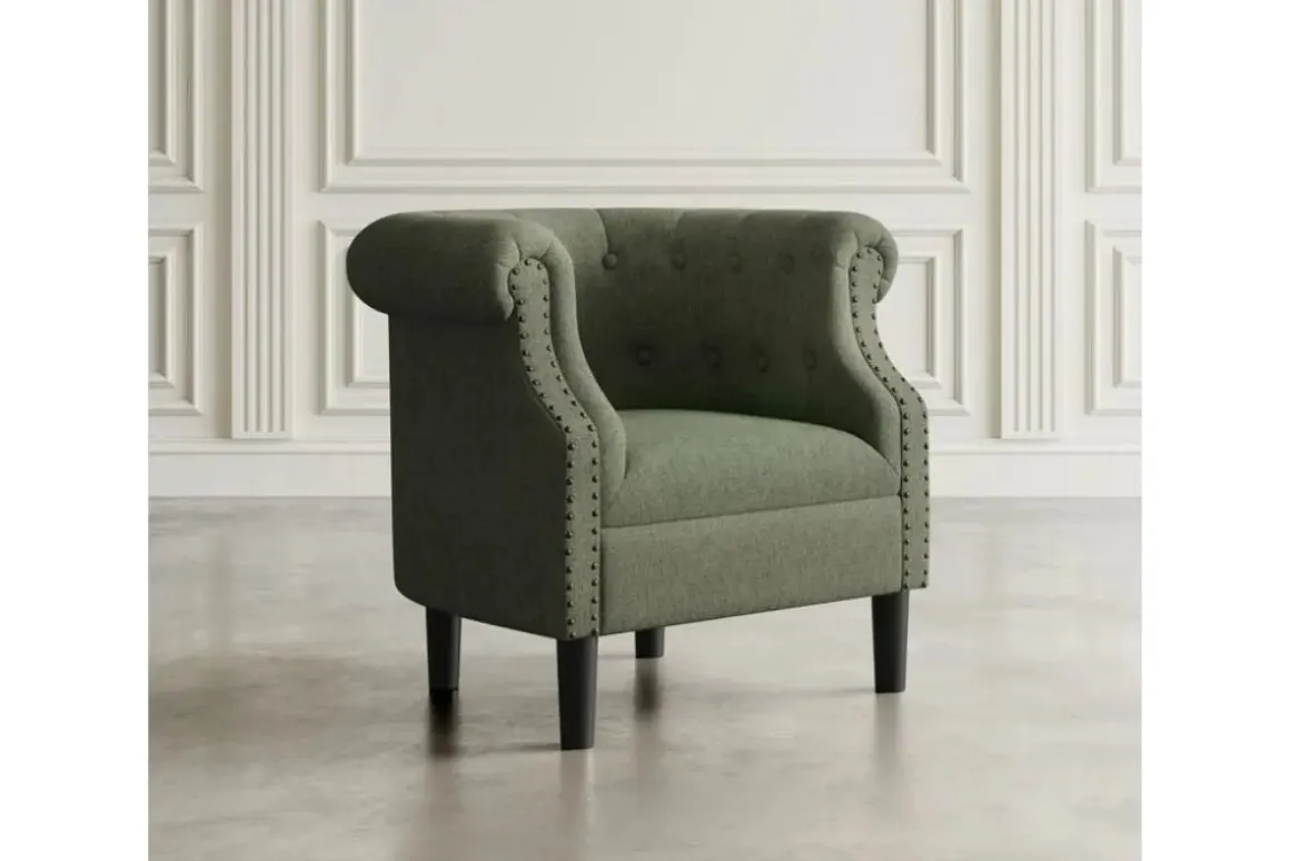The Lily Accent Chair boasts classic elegance and modern comfort with button-tufting and richly colored upholstery. Sturdy construction ensures long-lasting comfort. Perfect for any stylish living space.