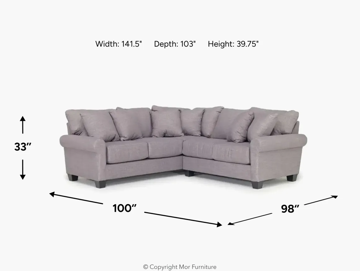 Indulge in the unparalleled luxury of the Amelia Crypton Performance Tux Loveseat Sectional in Nomad Slate, Left Facing. Upholstered in plush chenille fabric, its Crypton Performance technology ensures stain resistance and effortless maintenance. The loveseat’s wide area creates an inviting space for relaxation, while the elegant tux sofa adds sophistication and ample seating. Built on a kiln-dried frame with sinuous spring support and 1.8-density foam cushions, it delivers exceptional durability and softnessProduct Details:• Loose back cushions and zippered covers• Comes in a rich Nomad Slate hue• The throw pillows enhance its luxurious charm