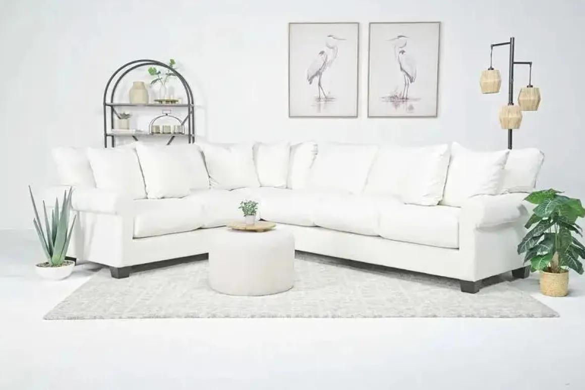 Perfectly blending refinement and practicality, this Amelia Crypton Performance Tux Sofa Sectional in Nomad Slate, Left Facing is the pinnacle of modern elegance. Designed with a transitional style and upholstered in plush chenille fabric, it combines durability with timeless style. With kiln-dried frame construction and supportive sinuous springs, it offers exceptional comfort and long-lasting quality. The loose back cushions, featuring batting and high-density foam, provide ultimate relaxation, while the deep seating invites you to sink in.Product Details:• Zippered cushions• The crypton performance material ensures easy cleaning• Complete with throw pillows for added charm
