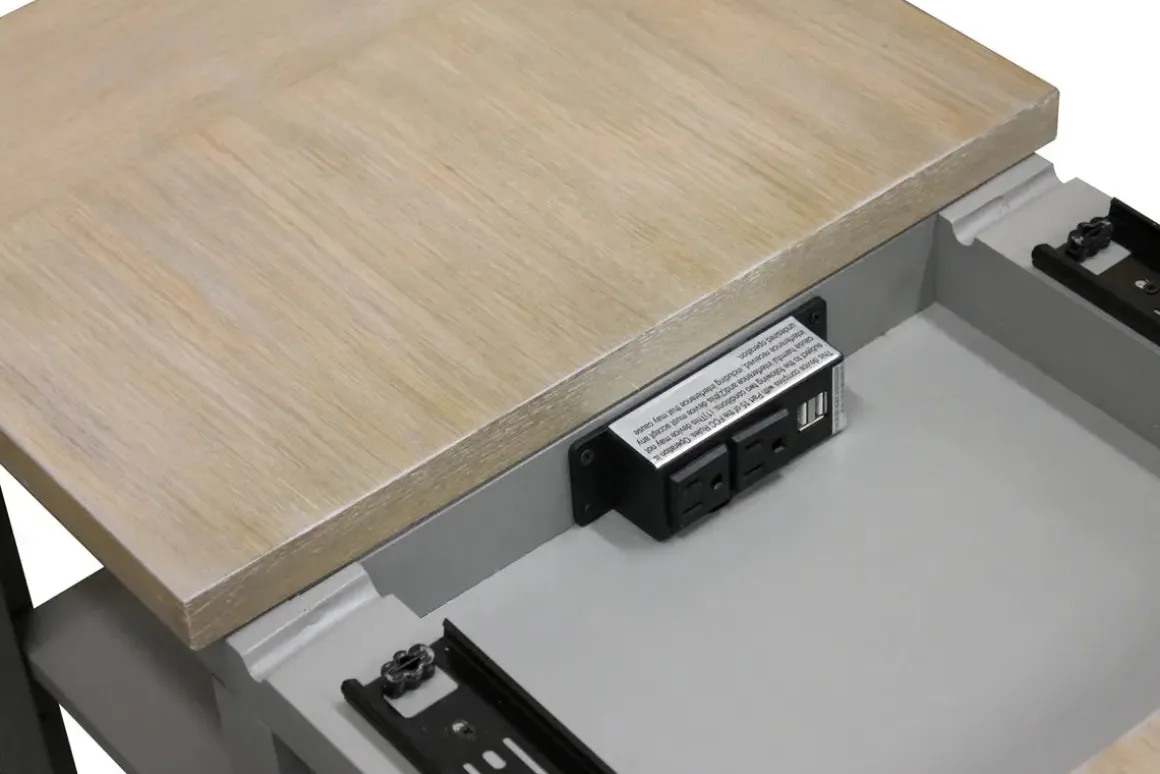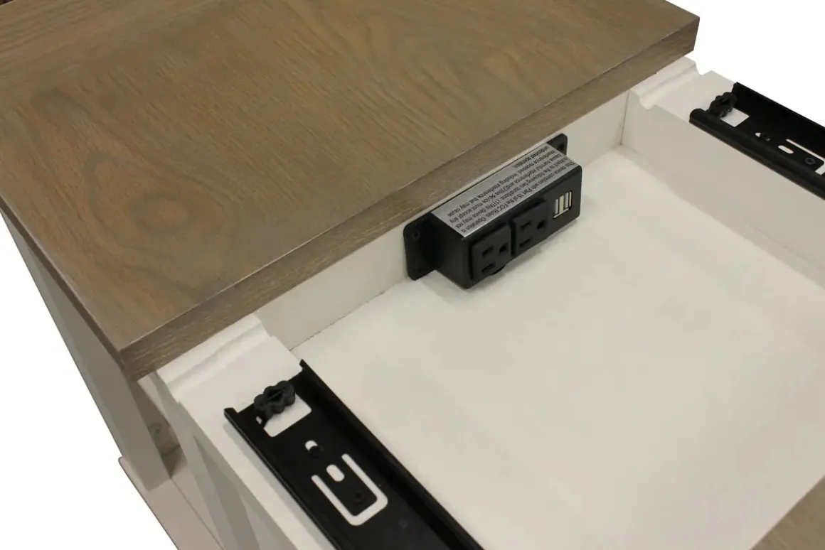 Every chair needs a sidekick, and the Americana Chairside Table in Blue is the perfect match for your living room furniture. The modern blue finish on the trestle table is stylish, and the flat slab top hides A/C and USB outlets, making sure you don’t have to miss anything due to low power. Place an Americana Chairside Table in Blue next to your favorite chair and make your living room your favorite room in the house.