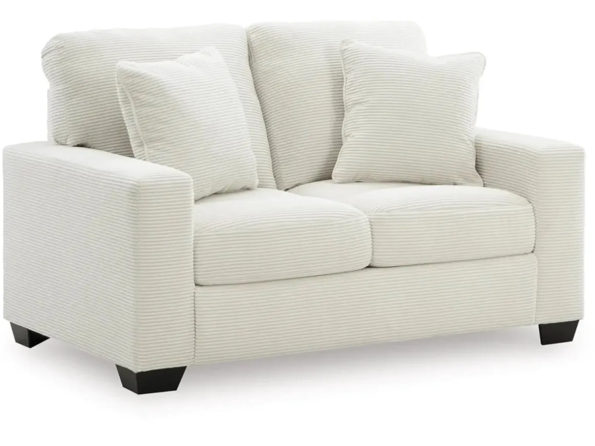 Bring home the Amesley Sofa & Loveseat in Ivory and create a welcoming space that’s perfect for family time, entertaining, or simply relaxing. This coordinated set features a clean, tailored silhouette with plush foam cushions that offer everyday comfort and support. The ivory upholstery brings a light, airy feel to your room, making it ideal for brightening up neutral palettes or softening bold decor. Whether you’re curling up with a loved one or hosting guests, the Amesley collection delivers timeless charm and lasting value for family living.