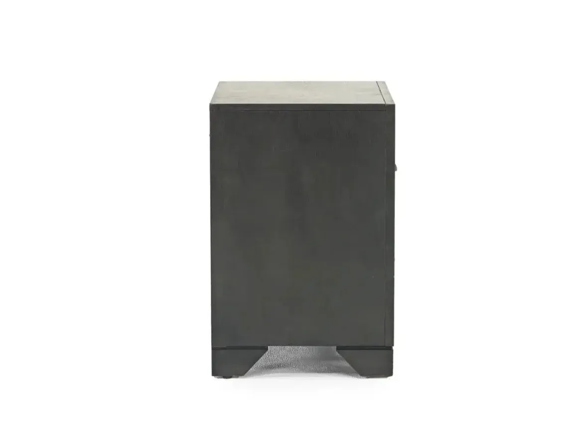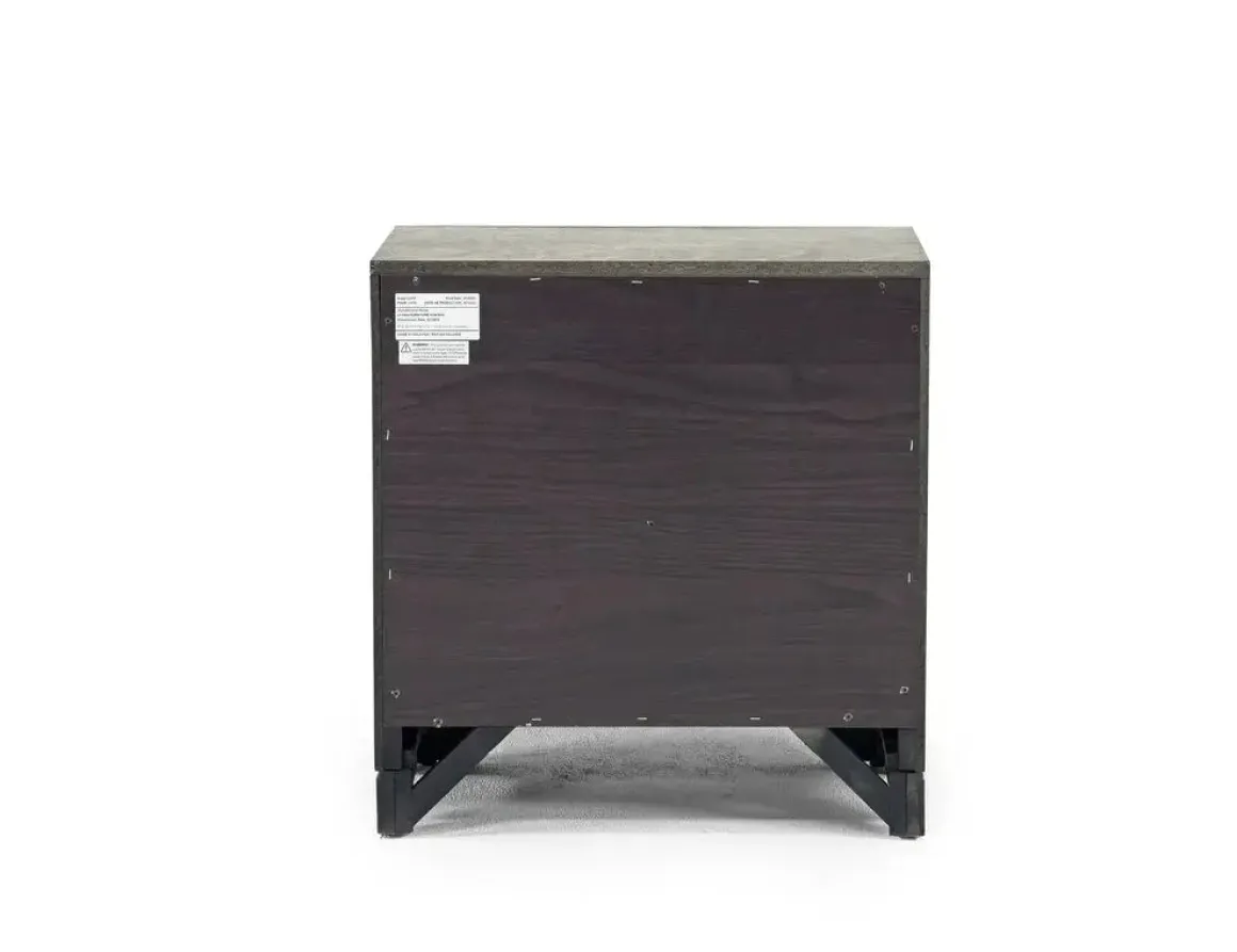 Sleek design and convenient functionality blend together in this Andes Nightstand in Charcoal. This nightstand will complete your bedroom, as it provides two storage drawers and a space for your phone, alarm clock, or bedside lighting. This footed piece stands 17 inches high, with a floor clearance of 3 inches, so cleaning beneath it is easy. The two drawers pull out easily and smoothly, the joints are English Dovetail construction. This piece is a cool, modern, sleek gray hue, and it will look good with any color palette you choose in the future.