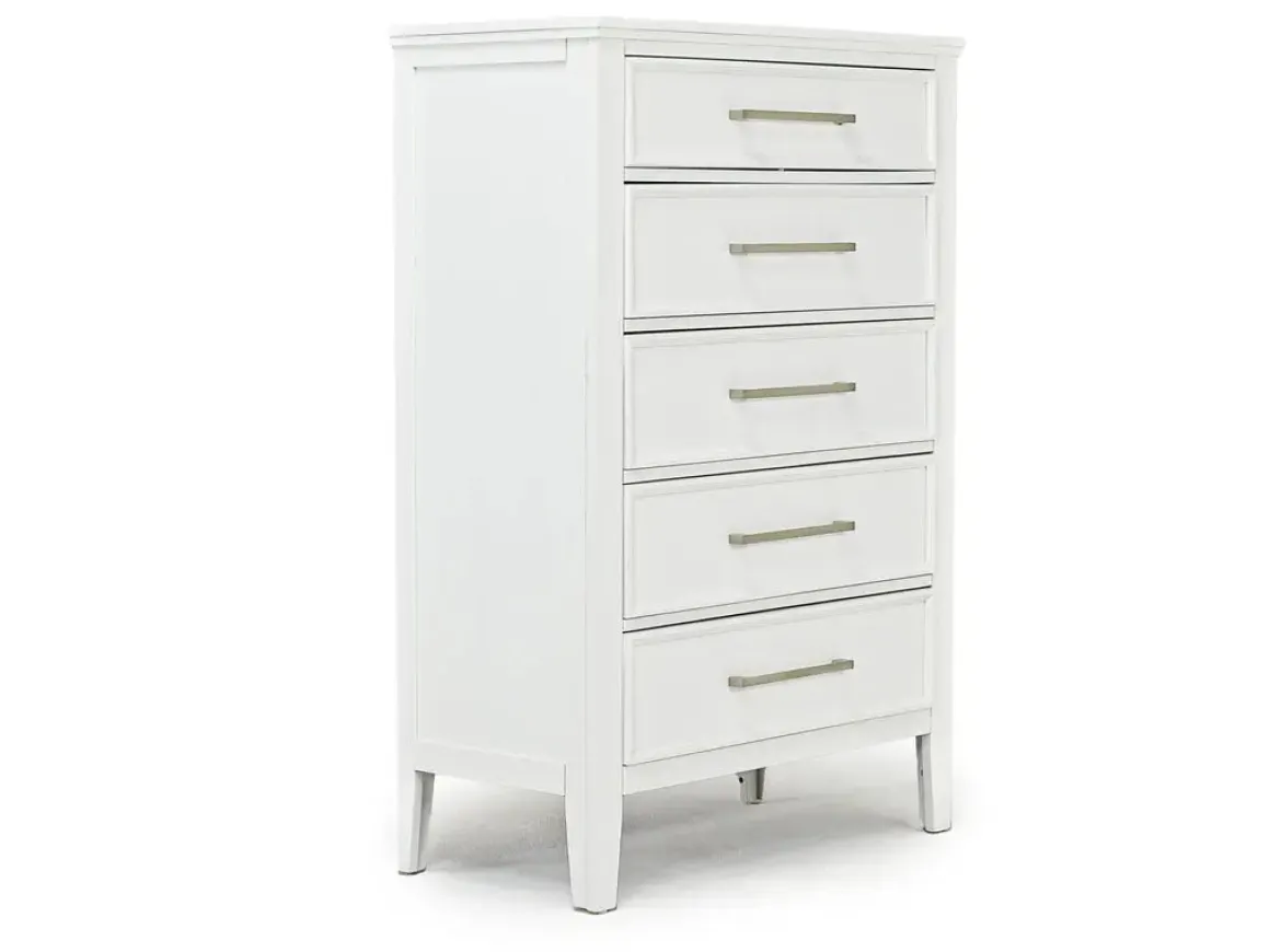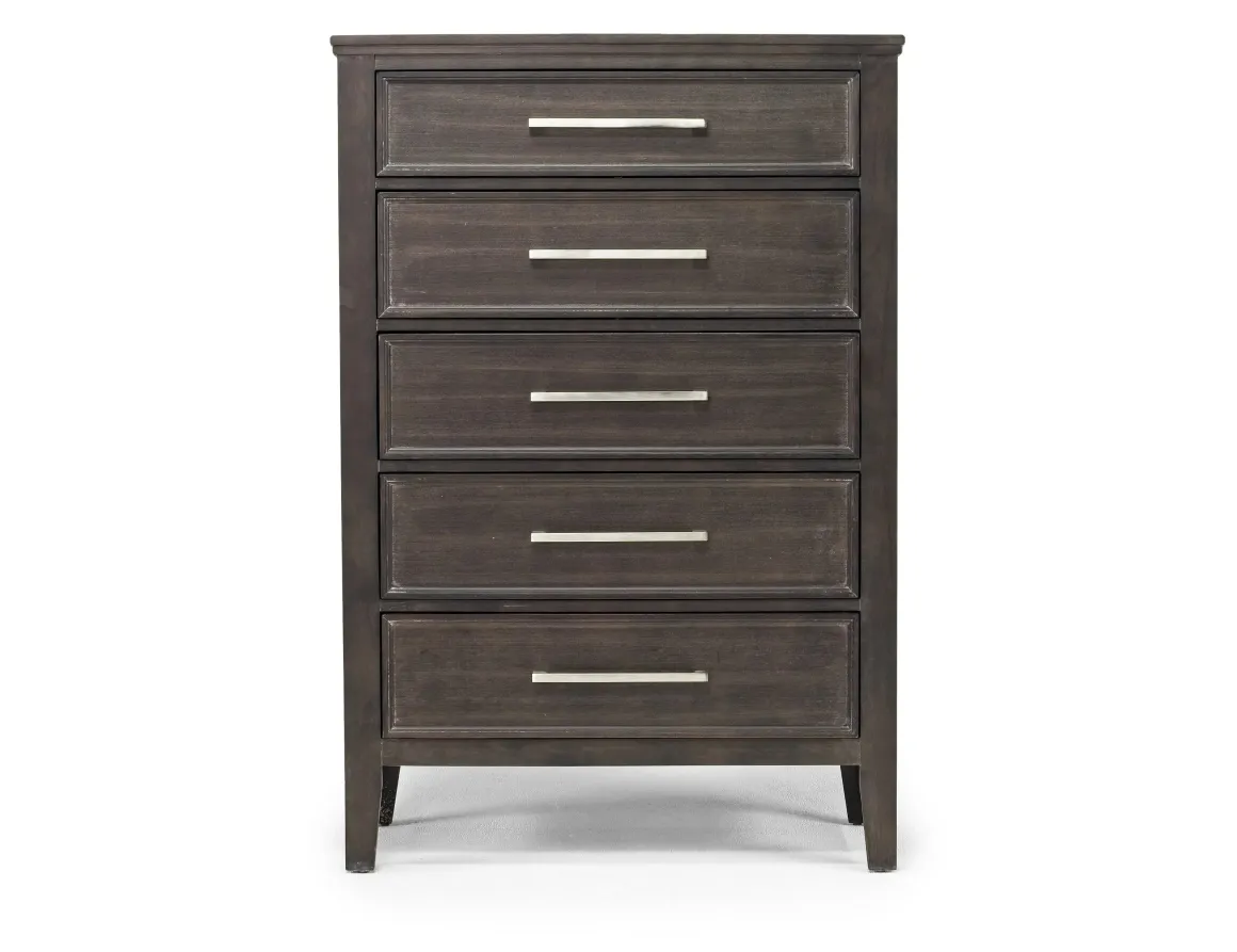 Ready to upgrade the look and feel of your bedroom or a guest room? Crafted from rubberwood and engineered veneers, the Andover Chest in Nutmeg lends a distinctive, dignified air to any bedroom. The five roomy drawers let you keep your room looking tidy and organized.