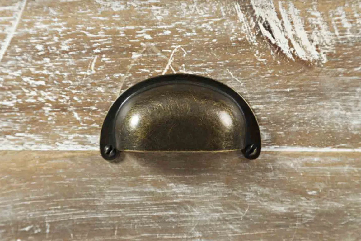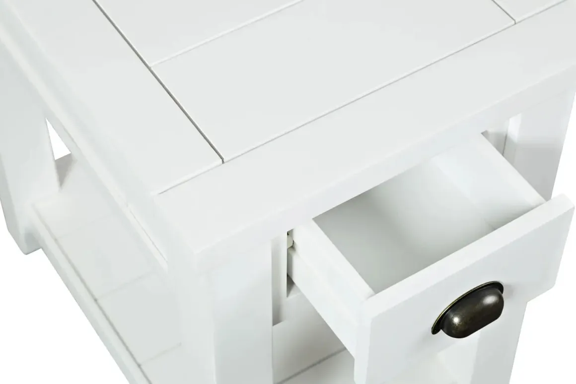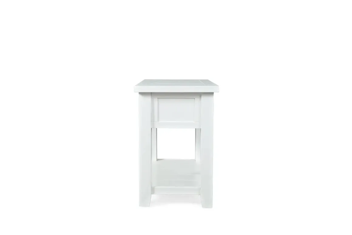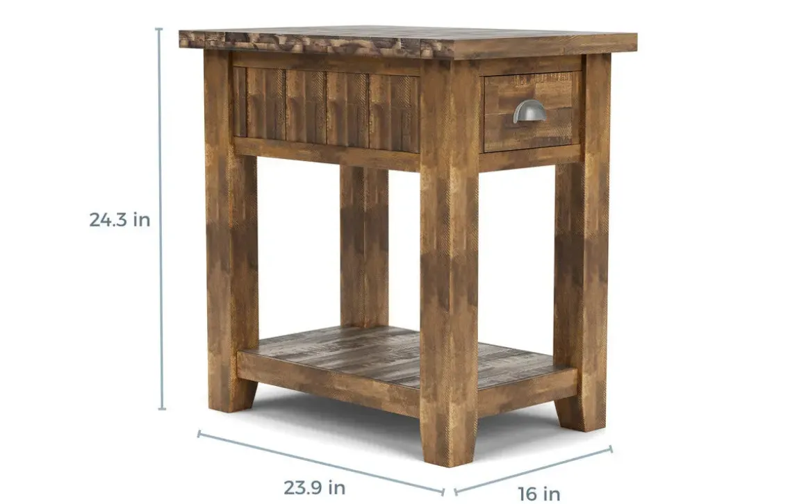 The Artisans Chairside Table in Gray pairs clean lines with distressed wood and vintage-style hardware for modern rustic appeal. Its petite frame makes it the perfect stage for a book and cup of coffee.