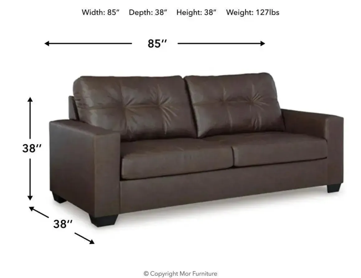 The Barlin Mills Sofa in Carbon blends everyday comfort with casual elegance, making it a perfect centerpiece for family living rooms. Upholstered in a rich carbon-toned fabric, this stationary sofa features foam cushioning and a loose back design that invites you to relax and unwind. Its clean silhouette and attached cushions offer a tailored look while maintaining a cozy, approachable feel. Whether you’re hosting guests or enjoying a quiet evening at home, this sofa delivers comfort, style, and lasting value for your space.