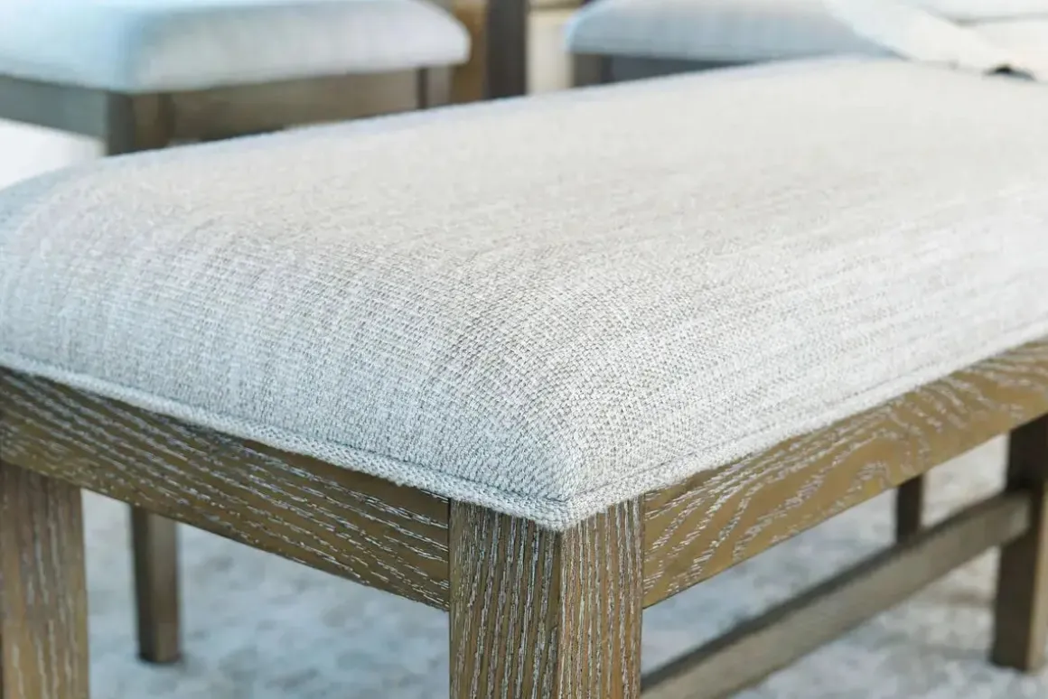 • Includes 4 chairs and a bench for flexible, space-saving seating