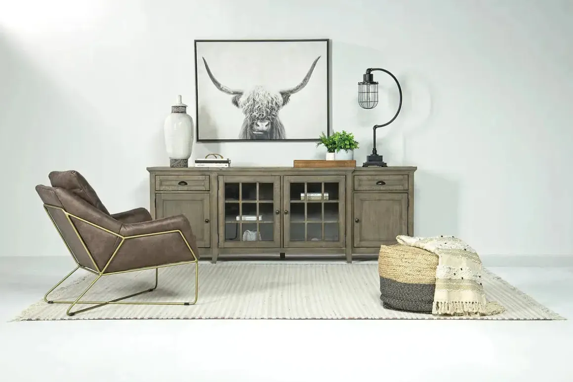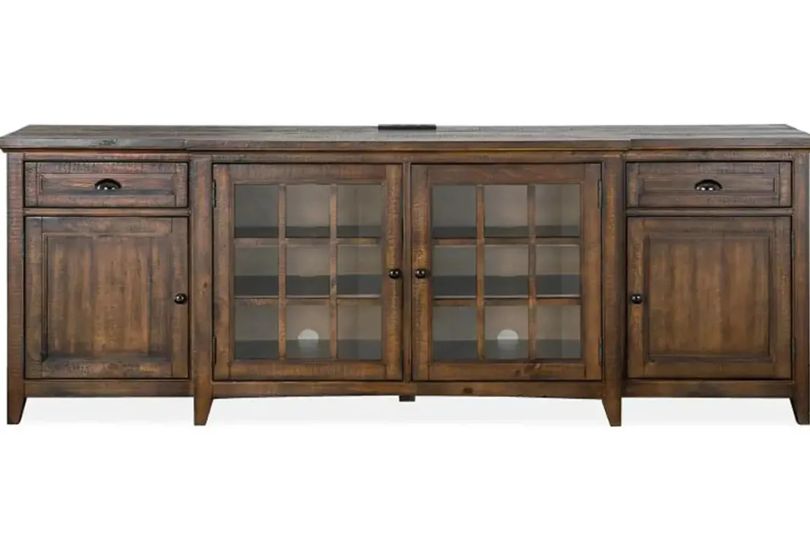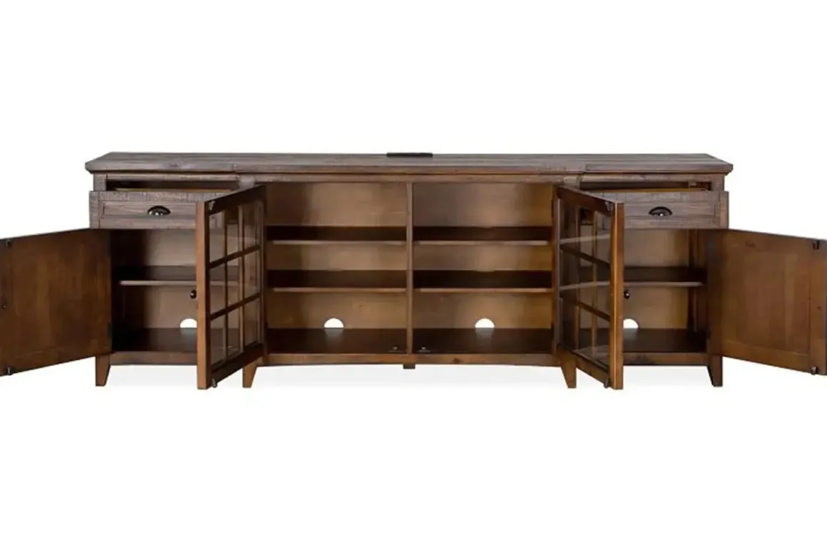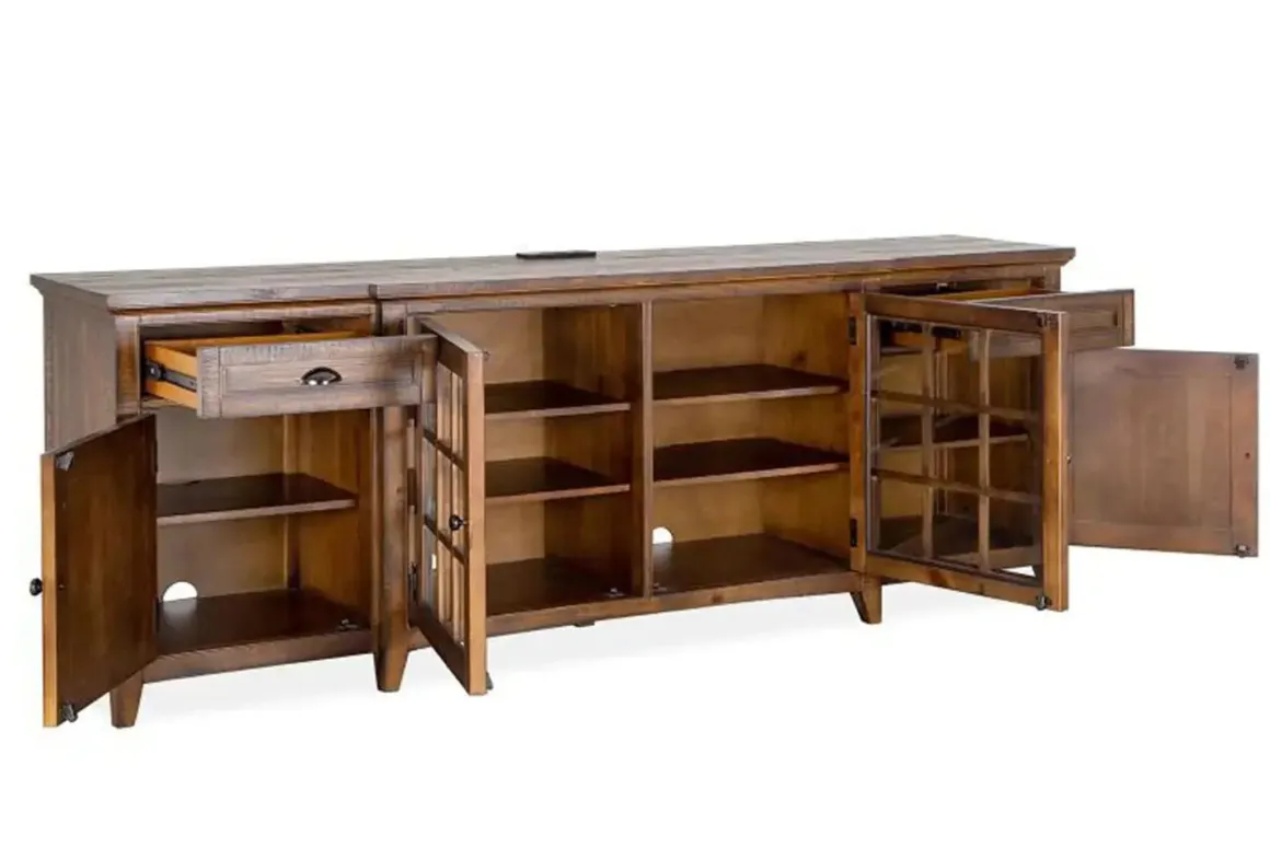 Designed for transitional and more modern spaces, the Bay Creek Media Console in Nutmeg with USB Charger, 70 Inch is the perfect pick for your living room or family room. Featuring a neutral design and an assortment of drawers, doors and shelves, Bay Creek is ideal for storing audio-video essentials, books and all of the other necessary equipment in your home.