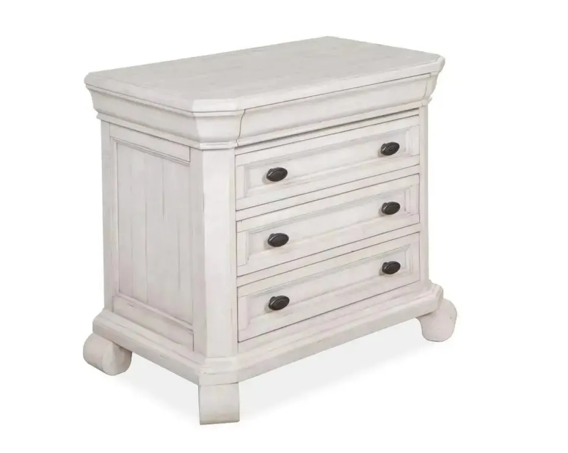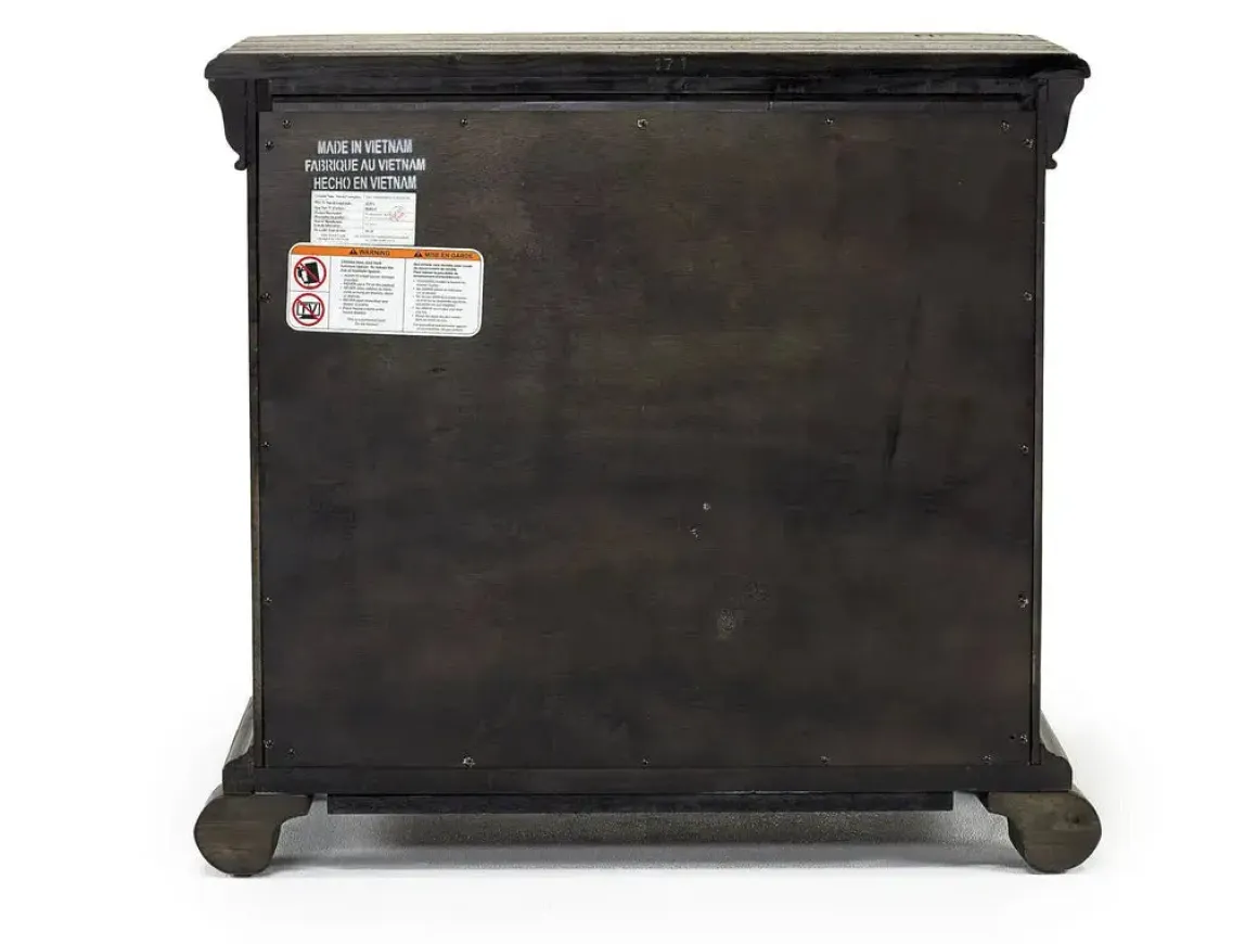 Charming and built with artisanal qualities this nightstand maximizes storage space and brings a pastoral feel to the bedroom. The fine wood grain visible in the Bellamy Nightstand in Charcoal speaks of quality and craftsmanship. It includes four drawers and has plenty of floor clearance space for easy cleaning.