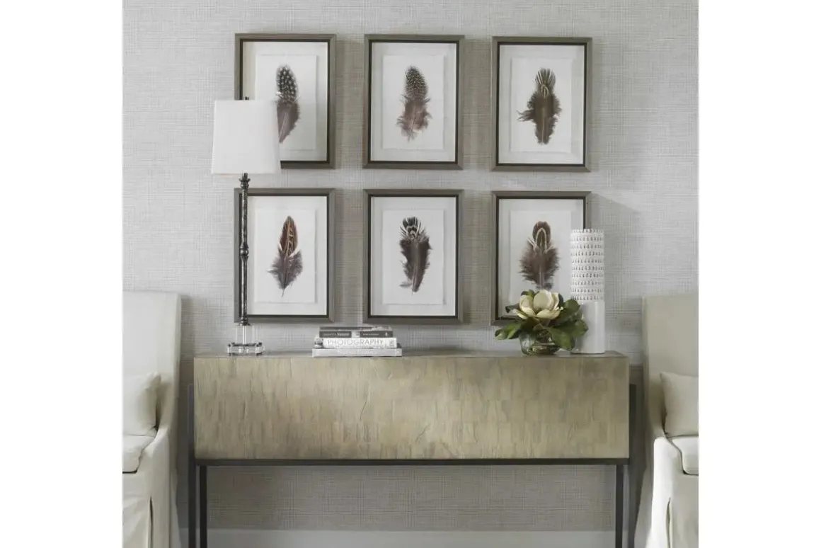 Unleash your inner bird lover with the charming Birds of a Feather Wall Art in Brown. Featuring 6 different paintings of various bird feathers, this wall art adds a touch of nature and whimsy to any room. The warm brown tones and intricate detailing make it a versatile piece that can easily complement any decor style. Made with high-quality materials, this wall art is sure to be a conversation starter and a focal point in your home.Product Details:• Set of 6 paintings featuring various bird feathers• Warm brown tones and intricate detailing add a touch of nature to any room• Made with high-quality materials for long-lasting durability and visual impact
