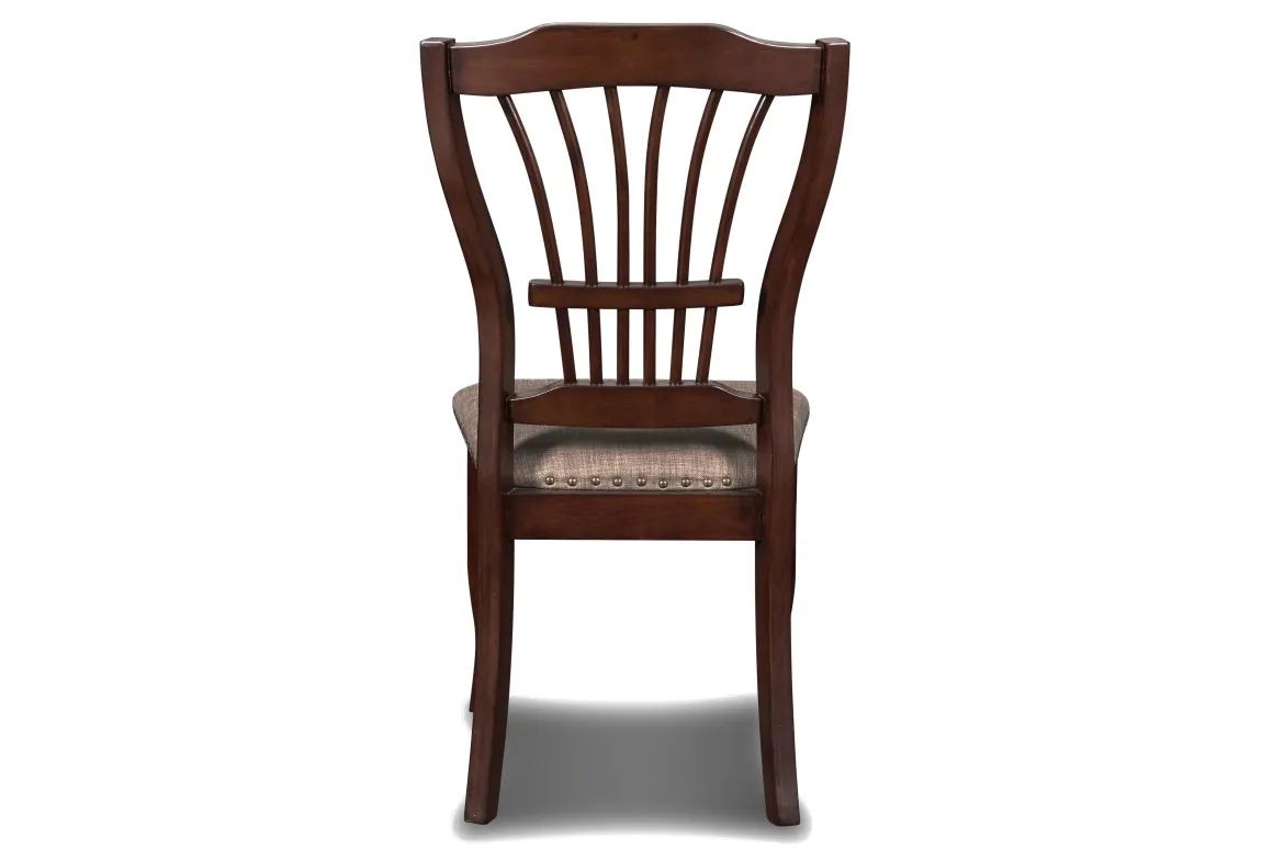 Walk right in, sit right down, the Bixby Side Chair in Espresso has got your back. Made to fit a standard height table, this chair has got style. Constructed from wood and finished with a beautiful veneer it will hold strong for years. The upholstered seat with nailhead detail creates a comfortable place to sit where you or your guests will like to linger. Great on its own as an accent or as part of a collection around a table, this chair has what you are looking for.
