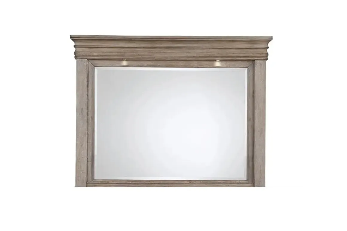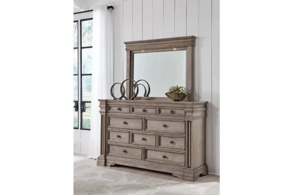 This bedroom mirror is made with solid wood, MDF and oak veneer. Features a top crown on the frame and beveled edges for the mirror. Pairs with Blairhurst Dresser. This mirror attaches to its coordinating dresser. Additional hardware may be needed for wall installation.