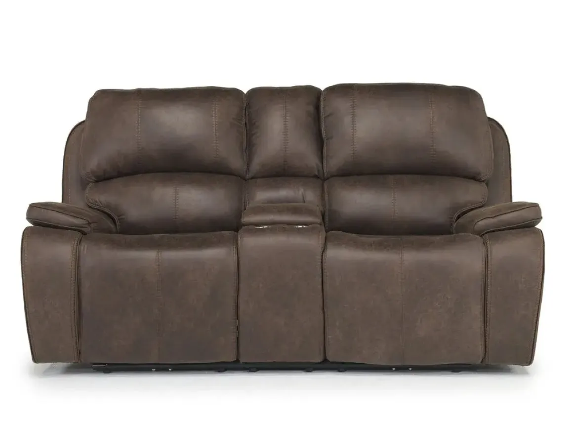 The Brookings 2 Power Console Loveseat in Brown offers style and functionality to enhance your living room. This loveseat features dual power recliners, providing ultimate comfort. The center console with storage compartment and 2 cup holders adds convenience and keeps essentials within reach. With its stylish crossing stitching pattern and loose back design, this loveseat combines comfort and contemporary appeal. This piece also boasts USB ports, allowing you to charge your devices conveniently without getting up.