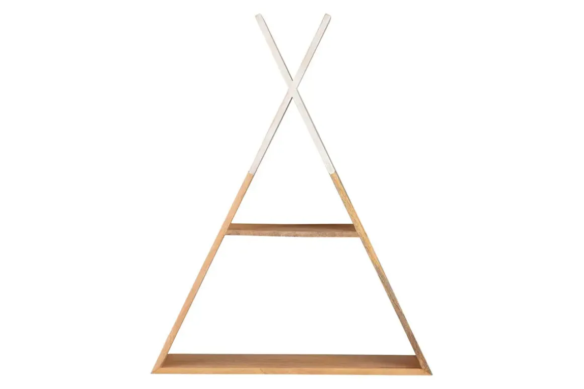 Turn your walls into space to store and display your favorite items on a Cadel Wall Shelf. The triangle shape has two shelves of differing lengths to fit your treasures. This shelf is so cool, it will look great as a feature piece on your wall, or get two to create a matching set. It’s a great place to put succulents, photos, or ornaments. Perfect for the kitchen, hallway, living room, or bedroom, you can show off your style with function while you refuse to grow up.Product Details:• Made from wood with a natural finish• Unique shape creates artistic impression• Sawtooth bracket for hanging includedDimensions:• 18”W x 6”D x 24”H</br