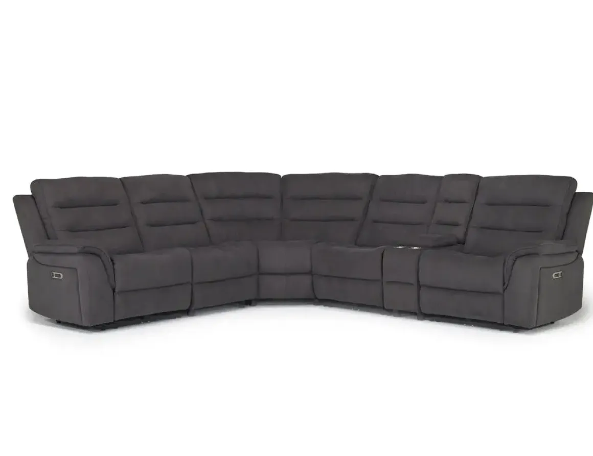 Chanell 6 Piece 2 Power Sectional W/ 2 Power Armless Recliner In New Nappa Gray