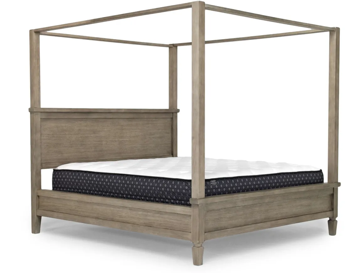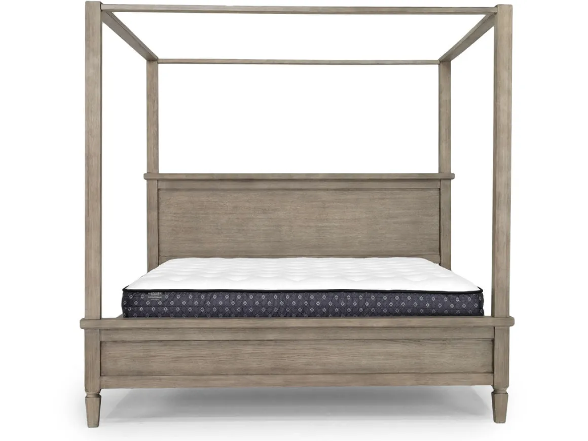 Country Side Canopy Bed, Dresser, Mirror & 2 Drawer Nightstand In Brown, Queen