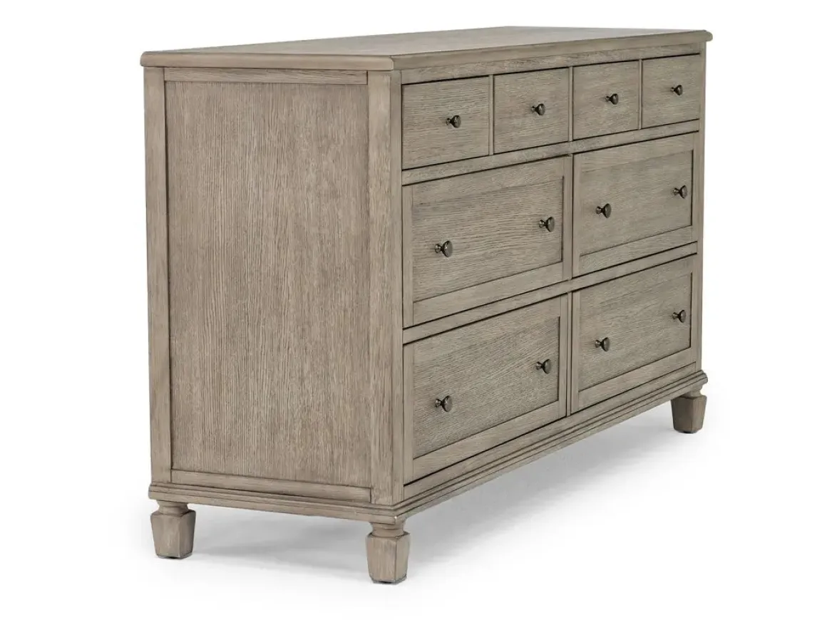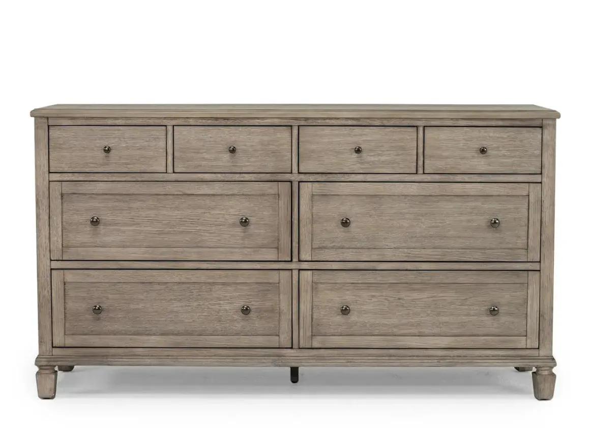 Upgrade your bedroom with the rich and timeless elegance of the Country Side Dresser in Brown. Boasting a transitional style, this dresser features eight spacious drawers with side mounted ball bearing glides and English dovetail joint construction for durability and ease of use. With a generous width, this dresser offers ample storage space for your clothing and essentials.Product Details:• Boasts eight big drawers for your bedroom essentials• Comes with side mounted ball bearing glides• Features a classic design and sturdy frame construction