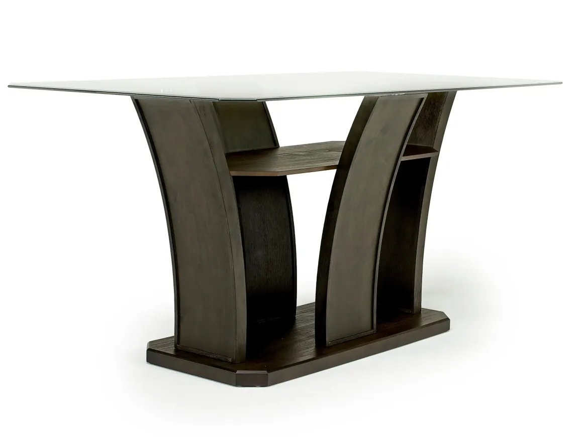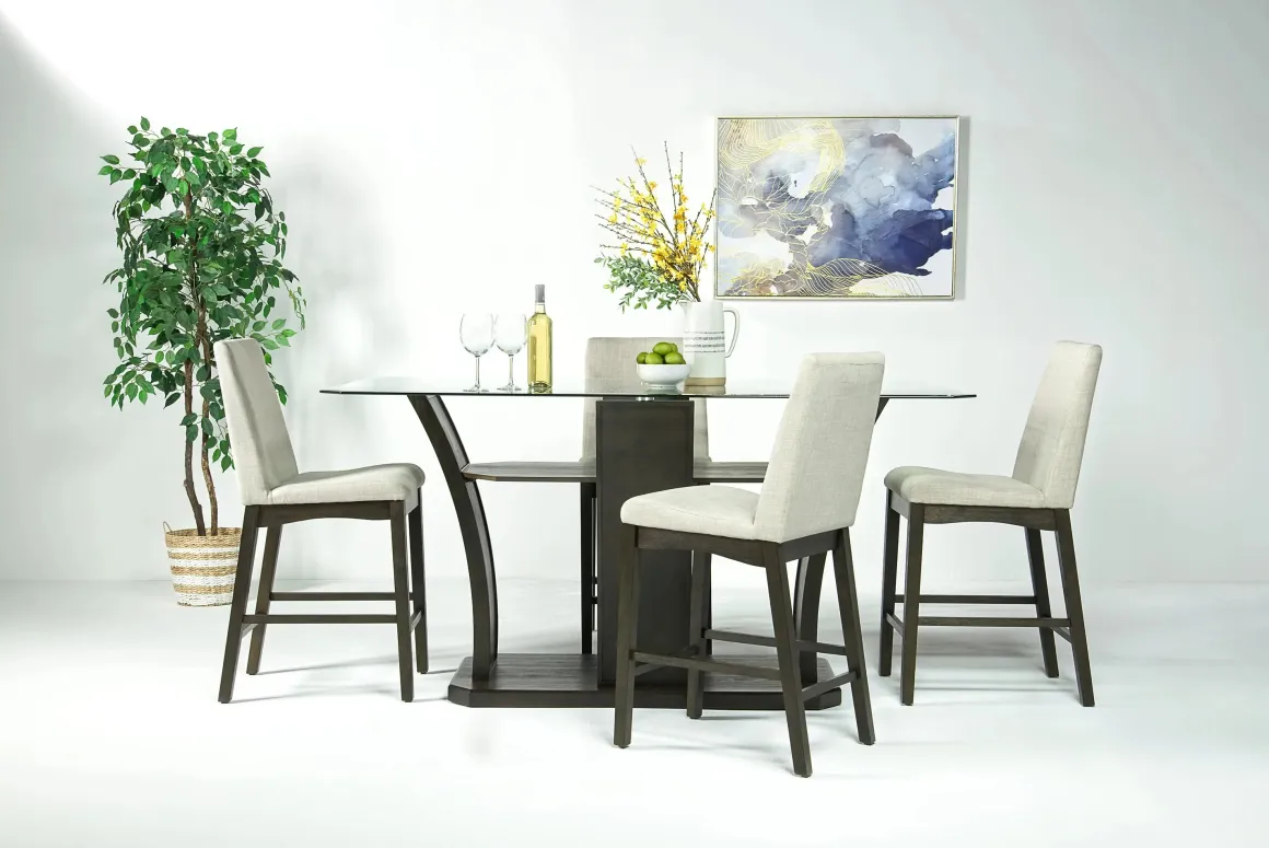 Every family meal is memorable when you dine together at a beautiful table with comfortable chairs and loads of leg room. The modern, sleek look of the Dapper Counter Height Dining Table with 4 Stools in brown adds that extra something stunning to your dining room.