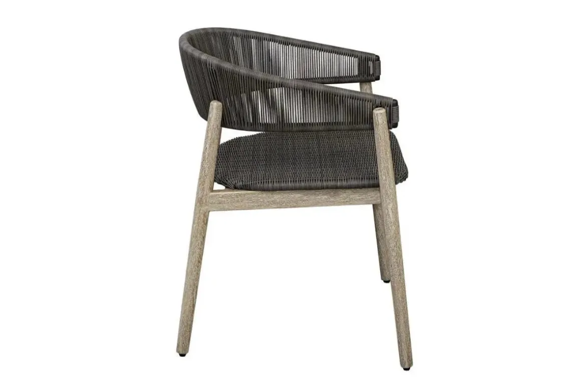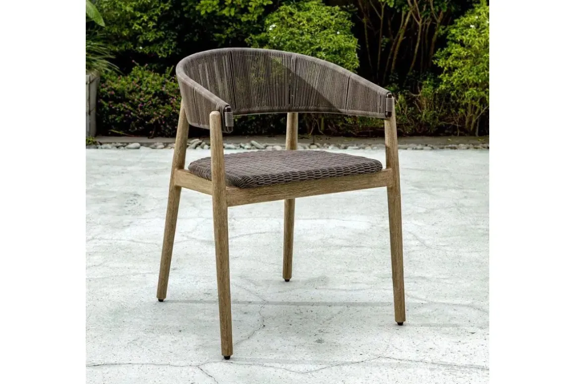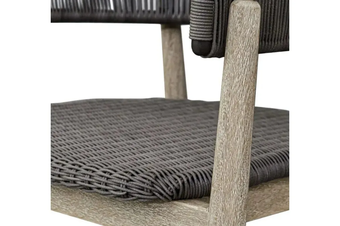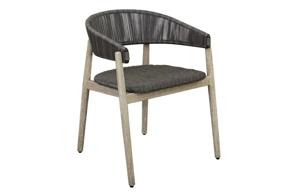 The Dermott dining chair is built to last and designed to impress. The sturdy mahogany wood frame in cerused wheat is complemented by a comfortable all-weather wicker seat and backrest in java.