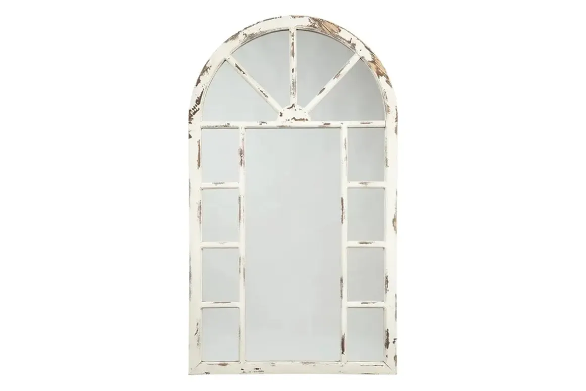 Use this Divakar Accent Mirror in Antique White to finish any room in your home. The distressed, antique white paint looks great with any color. It will look amazing in your foyer, hallway, living room or kitchen. If you like Bohemian or ”chic shabby” styles, this piece is the ultimate finishing touch.