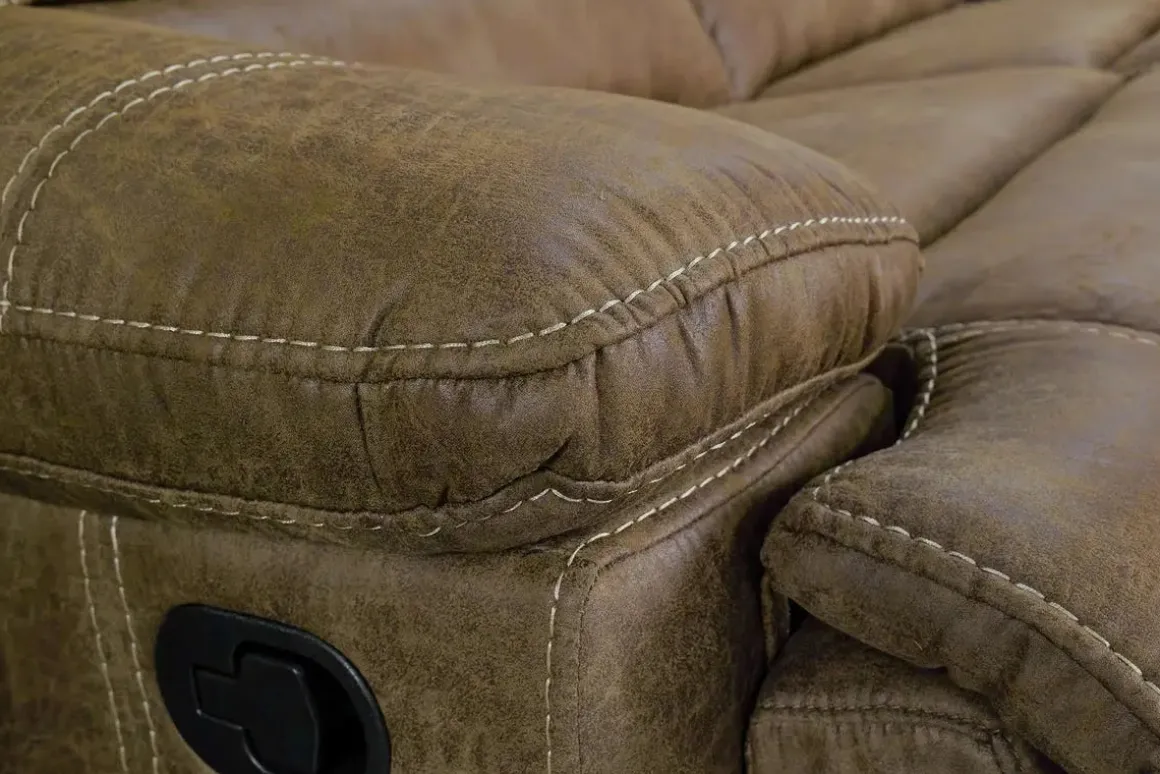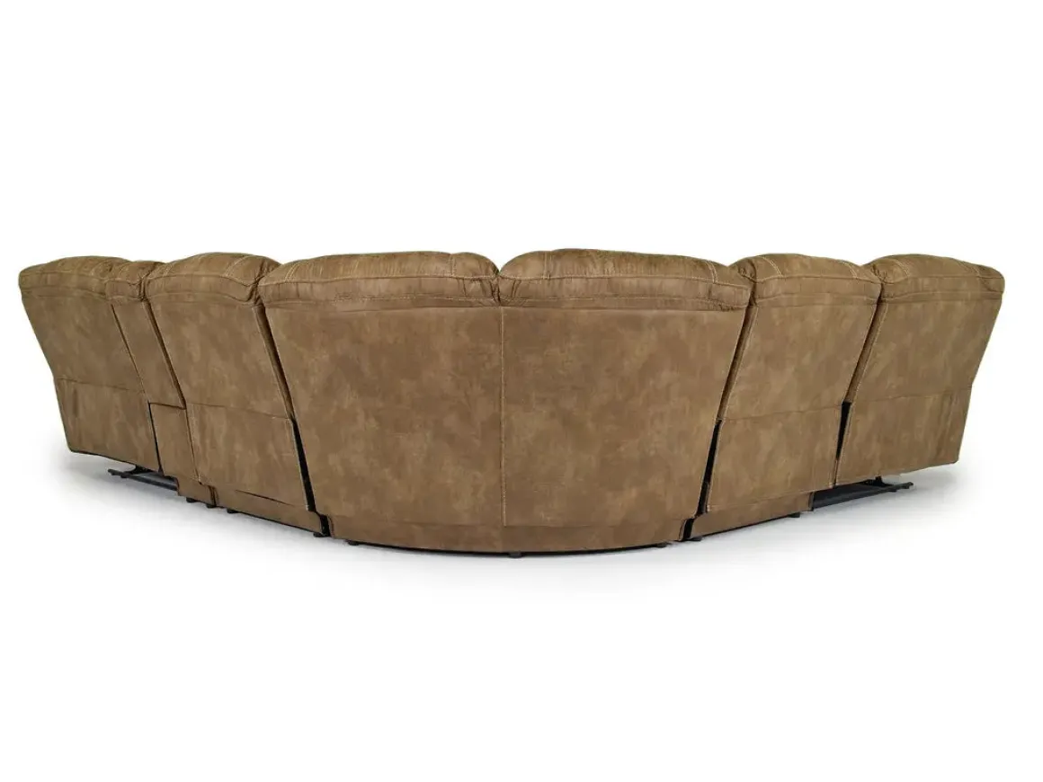 Stretch out and settle in with the Dusty 6 Piece Reclining Sectional in Bonanza Silt—a spacious and stylish solution for family lounging. This sectional features manual reclining seats, foam cushioning, and a tight back design that offers supportive comfort without sacrificing a clean silhouette. The rich Bonanza Silt upholstery adds warmth and texture to your living space, while the console provides convenient storage and cup holders for movie nights and everyday relaxation. Whether you’re hosting guests or enjoying quiet time, the Dusty sectional delivers comfort and value with a transitional flair.