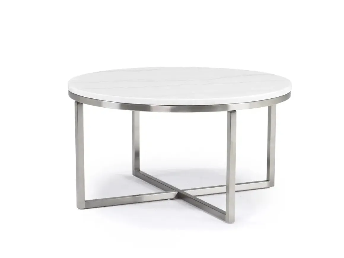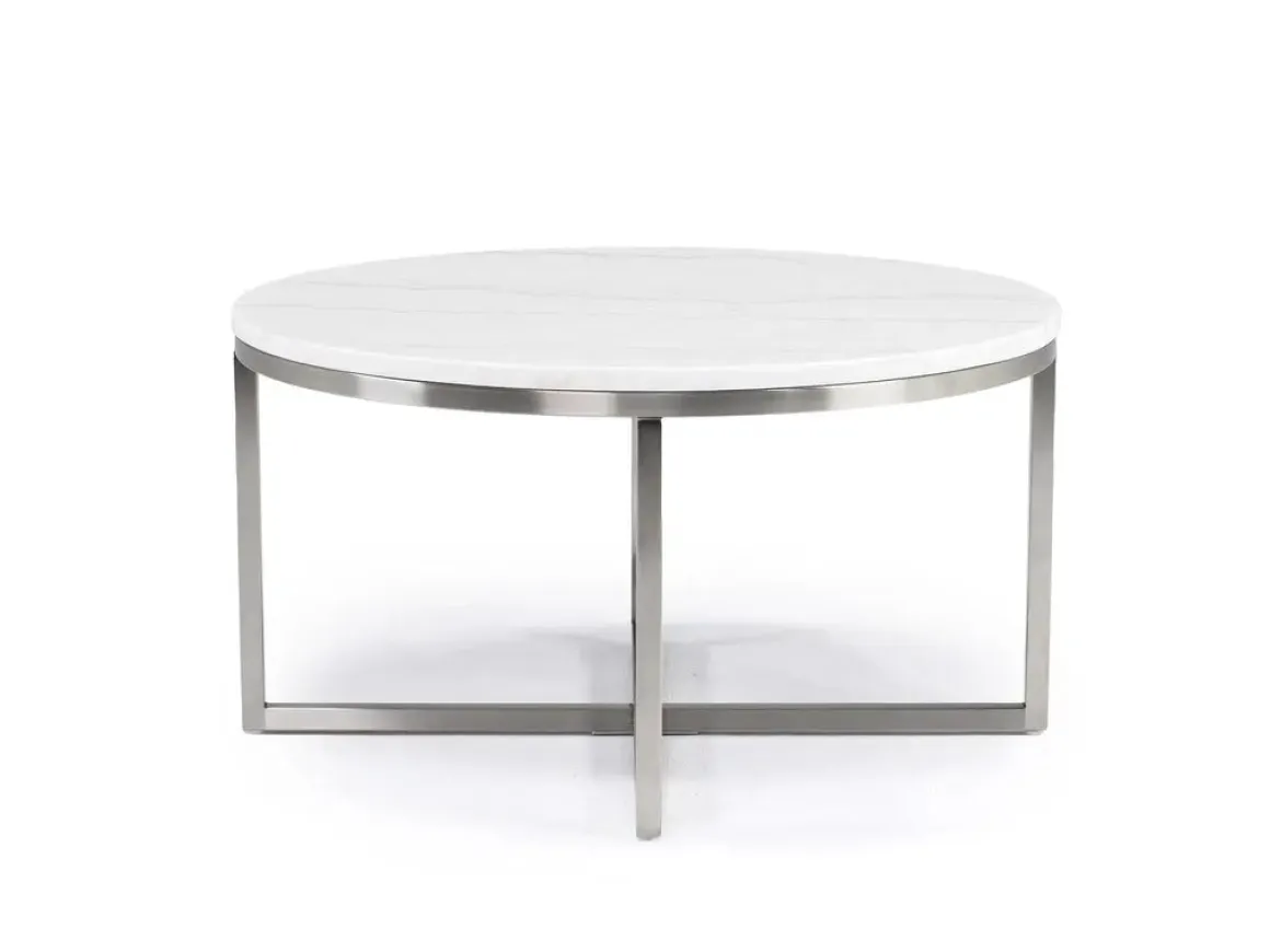 For bright and airy spaces, the Esme Round Coffee Table in Snowfall is the perfect addition. The snowfall finish gives this table a light and airy feel, while the round shape adds a modern touch. The combination of stone and stainless steel materials make this coffee table both stylish and durable. So, why not add a touch of elegance to your living room with the Esme Round Coffee Table?Product Details:• Snowfall finish gives this table a light and airy feel• Round shape adds a modern touch to any space• Stone and stainless steel materials ensure durability