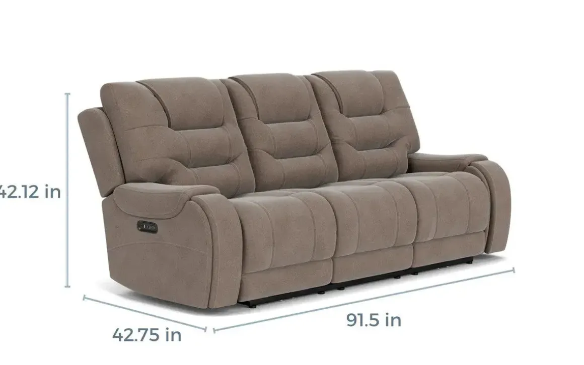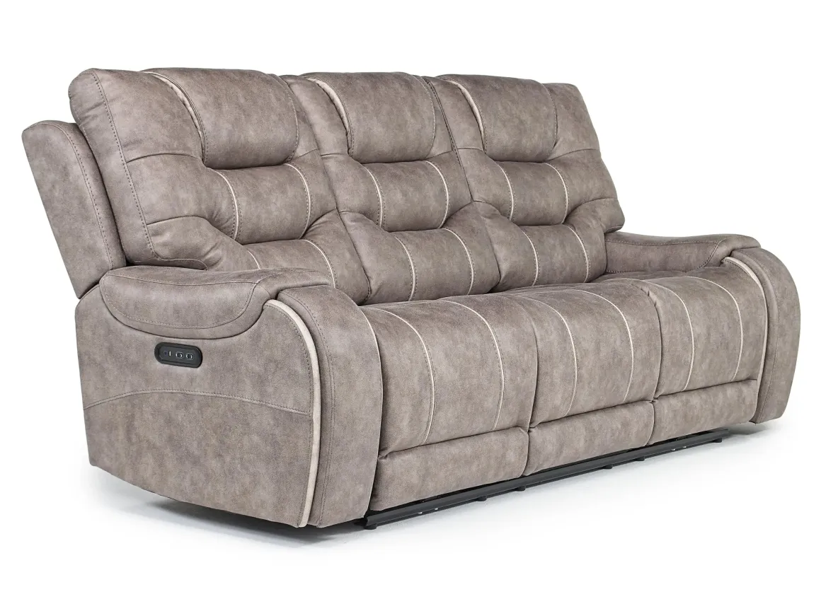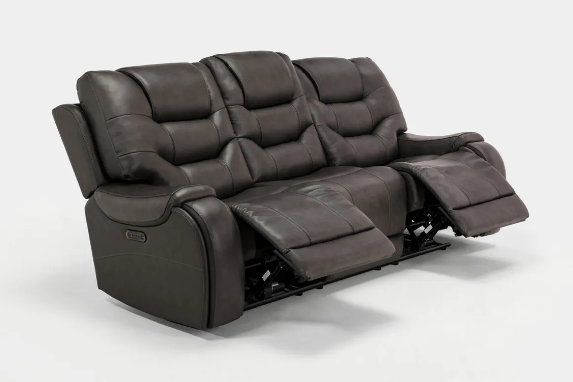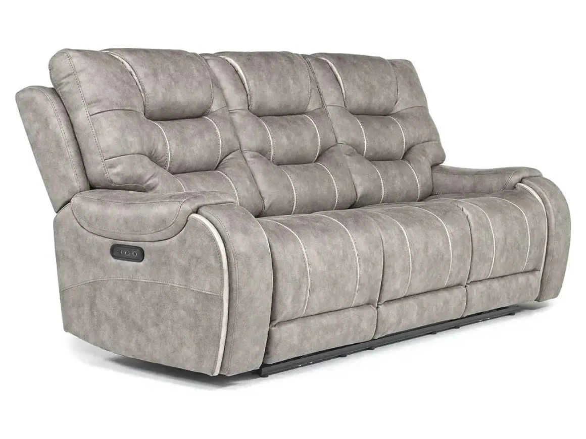 The Estilo 2 Power Sofa in Canyon Gray offers the ultimate in comfort and style. This luxurious sofa features two power recliners and a stationary middle seat. In addition, the plush, cushioned seats, and backrests provide unparalleled comfort. This reclining sofa is perfect for family movie nights, entertaining guests, or relaxing after a long day.