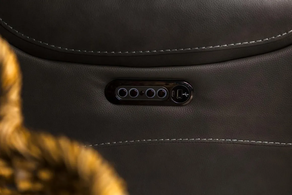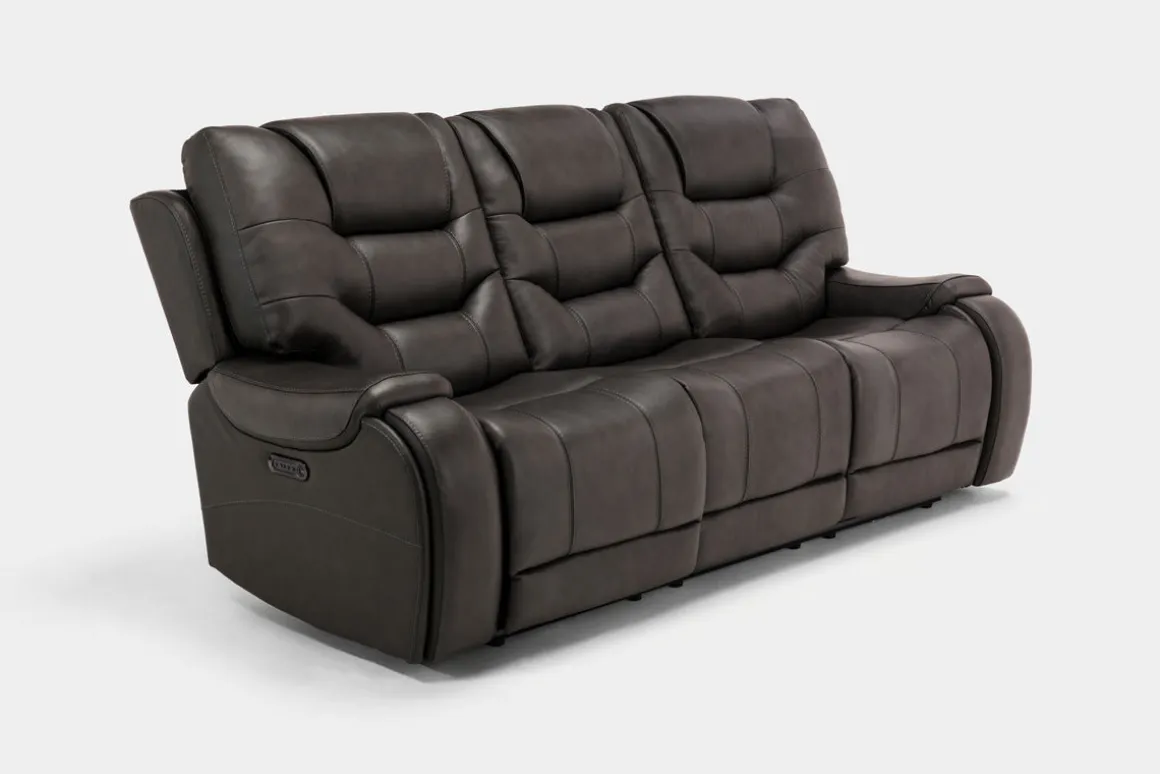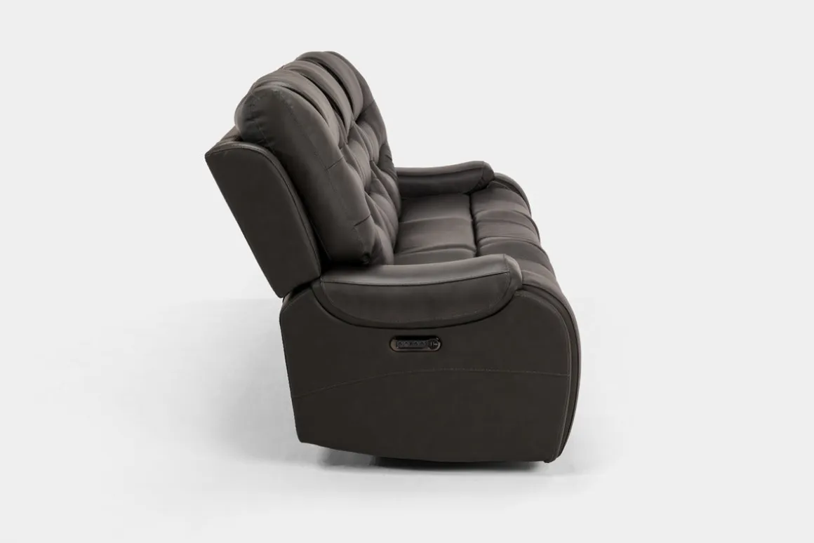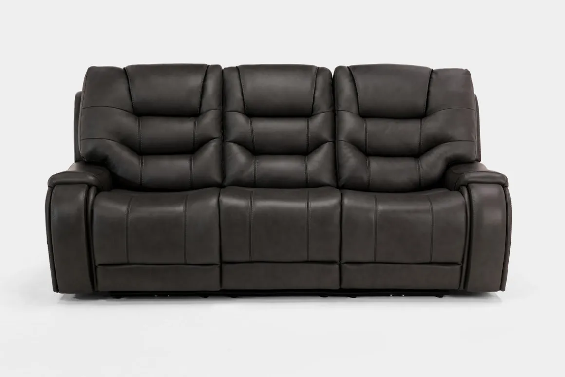 The Estilo 2 Power Sofa in Canyon Gray offers the ultimate in comfort and style. This luxurious sofa features two power recliners and a stationary middle seat. In addition, the plush, cushioned seats, and backrests provide unparalleled comfort. This reclining sofa is perfect for family movie nights, entertaining guests, or relaxing after a long day.