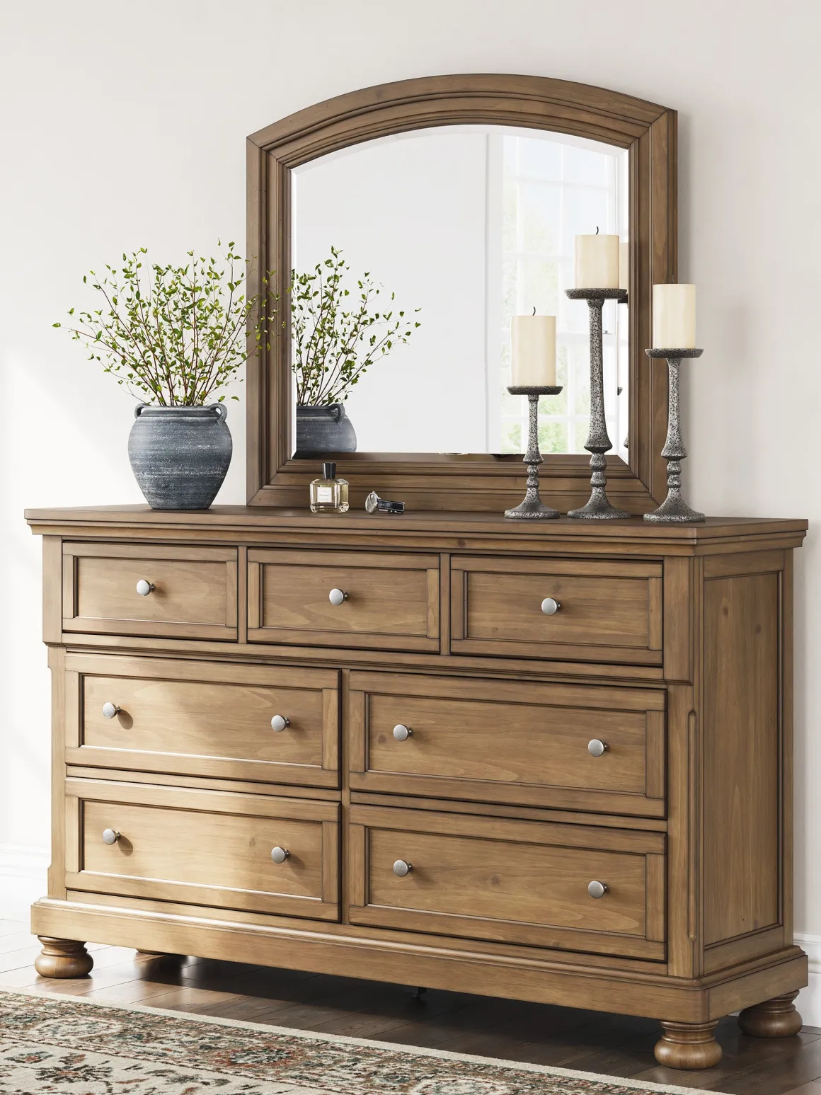 The Feddinger Dresser in Medium Brown brings a warm, easygoing charm to your bedroom with its inviting wood tone and timeless silhouette. Perfect for busy households, this spacious dresser keeps everyone’s essentials organized while adding a naturally refined touch to the room. Its smooth‑gliding drawers and classic framed fronts offer both practicality and style, making it a family‑friendly piece that blends beautifully with traditional, farmhouse, or rustic décor. Whether you’re tucking away clothes or displaying décor on top, this dresser helps create a calm, collected space the whole family can enjoy.