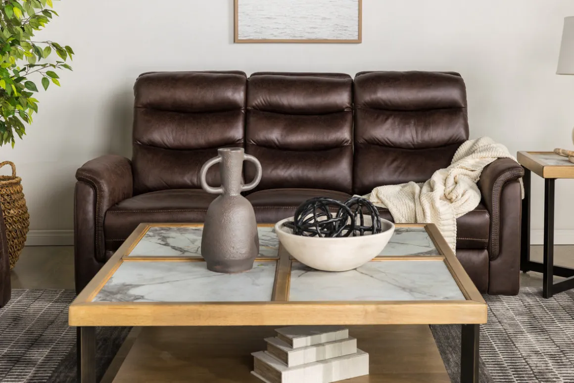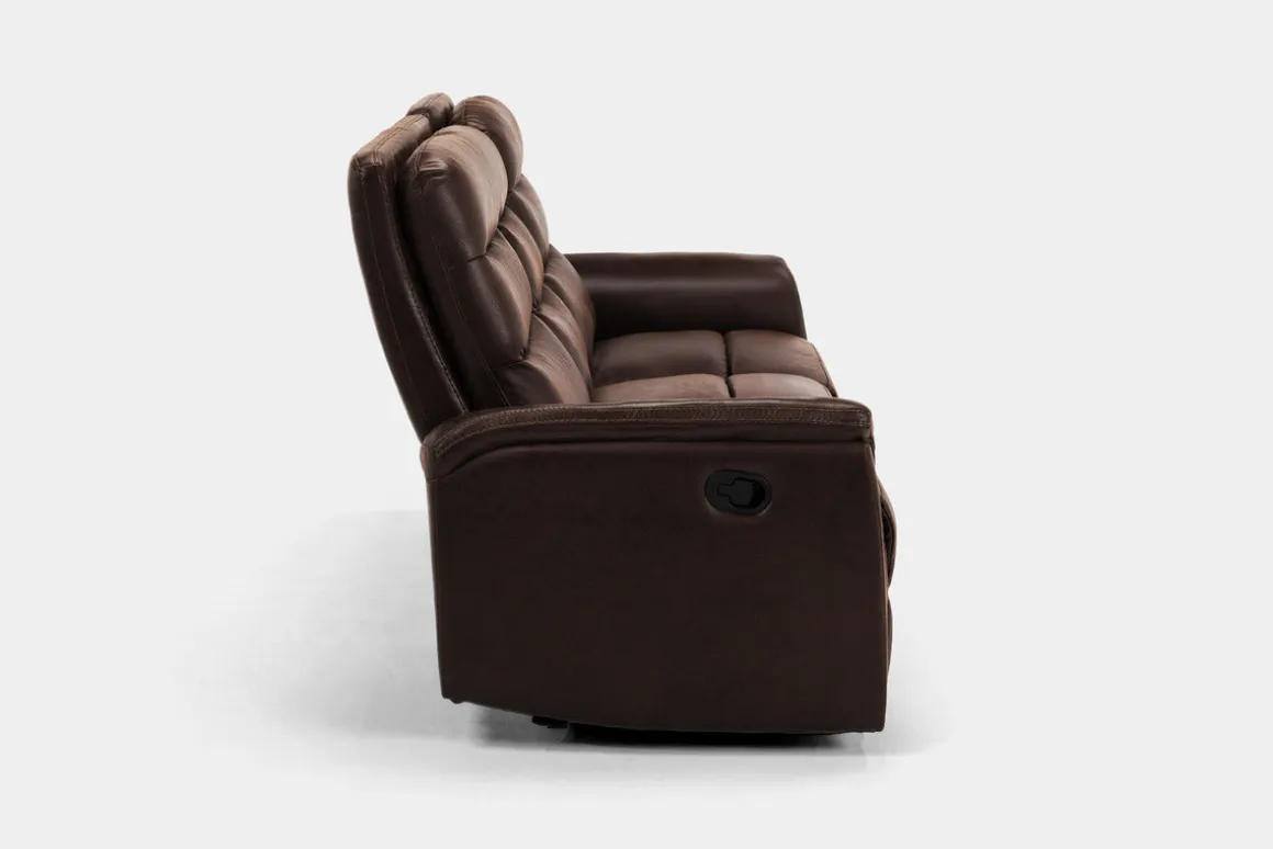 Create a welcoming spot for the whole family with the Forte Reclining Sofa in Dark Brown, a cozy, value‑packed piece designed for everyday relaxation. Its smooth manual‑reclining seats make it easy to kick back after a long day, while the tight‑back silhouette and attached cushions keep your living room looking neat and put together. Sized generously for shared lounging and finished in a warm, versatile dark‑brown tone, this sofa blends effortlessly with casual and contemporary decor styles. Built for comfort and crafted for real‑life durability, it’s the kind of sofa that makes home feel like home.