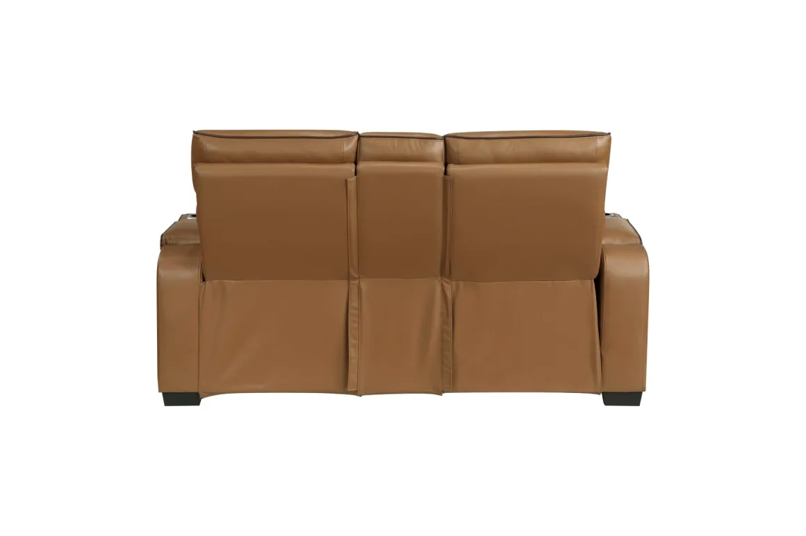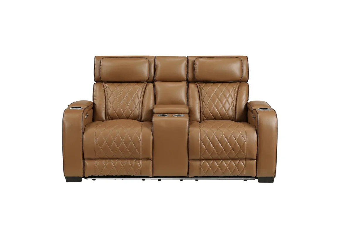 The Gallington 2 Power Console Loveseat in Brown gives your living room the perfect blend of comfort, convenience, and family‑friendly style. Wrapped in a warm brown upholstery with quilted diamond stitching, this dual‑power console loveseat lets everyone settle in with personalized head‑ and footrest support at the touch of a button. A movie‑night must‑have—complete with cupholders and utility space. With its padded, supportive seating and modern silhouette, this console loveseat brings lasting comfort and an elevated look that fits beautifully into contemporary or transitional homes.