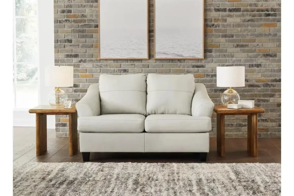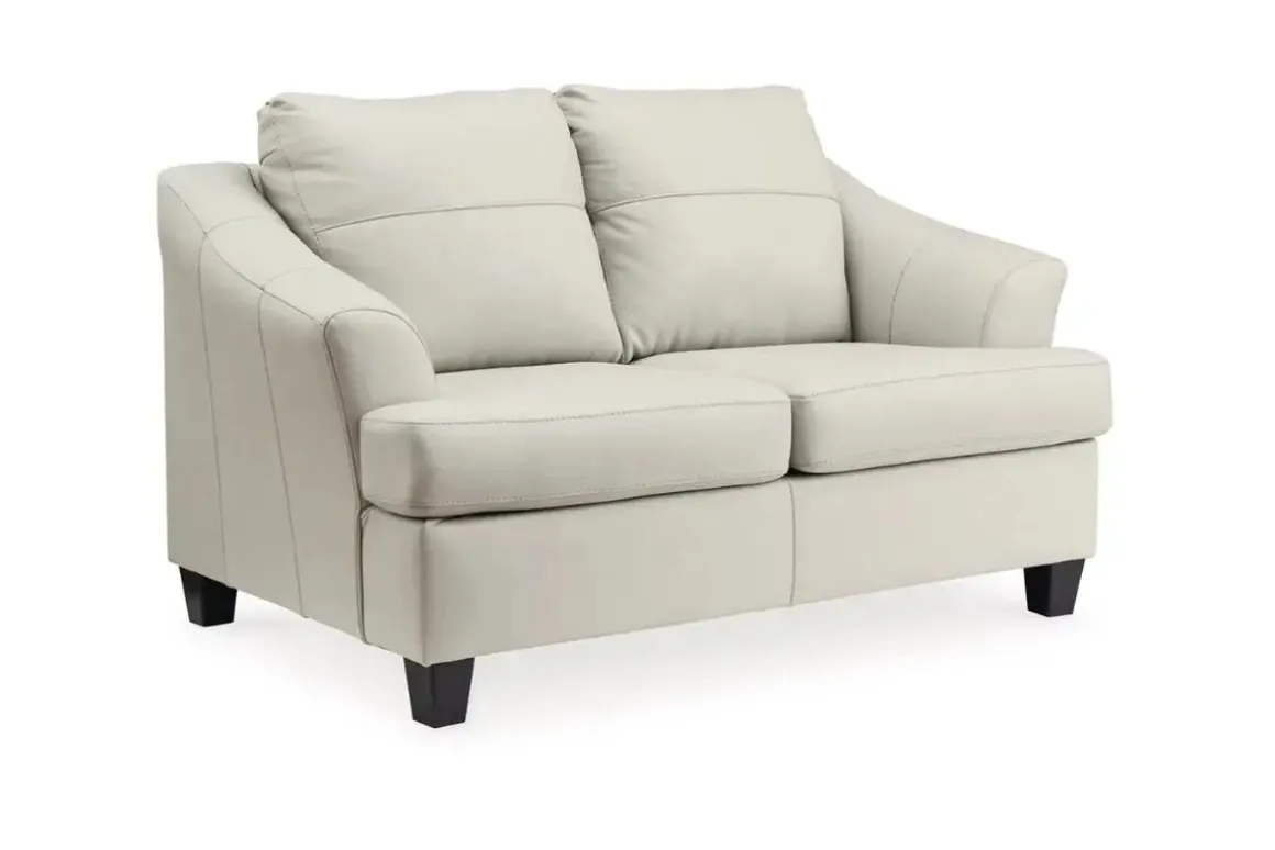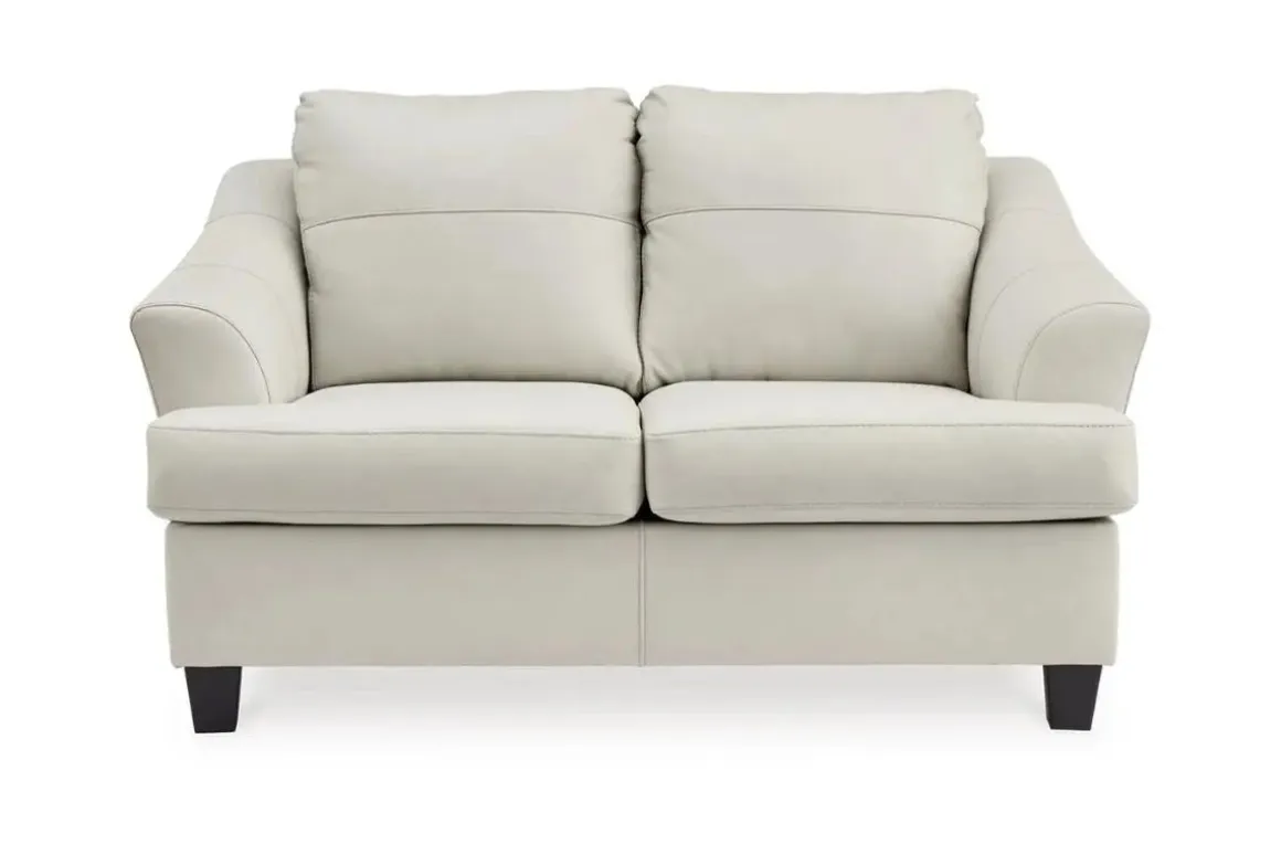 Complement your living room with the cozy and stylish Genoa Loveseat in Coconut. The soft cream color and plush cushions make this loveseat a comfortable and inviting addition to any space. The elegant tall armrests and soft cushioned back provide support and comfort for hours of lounging. This loveseat is perfect for snuggling up with a loved one or relaxing on your own.