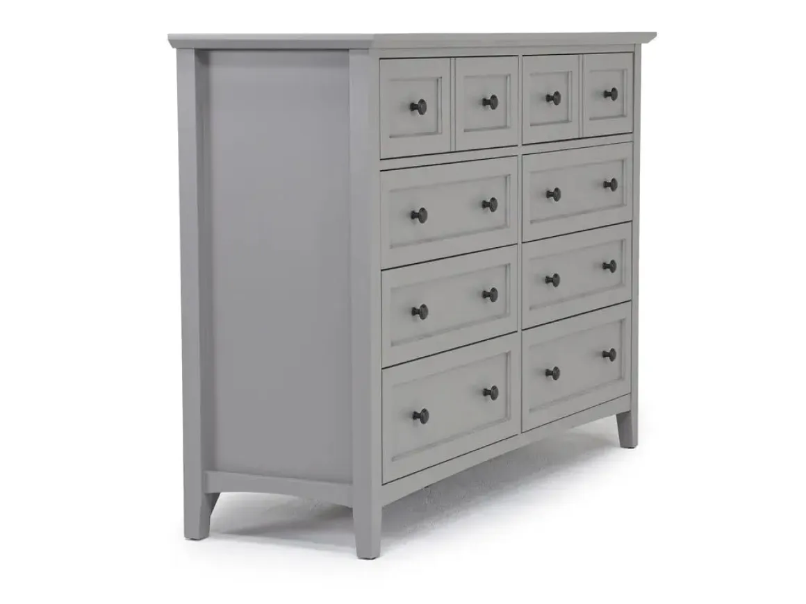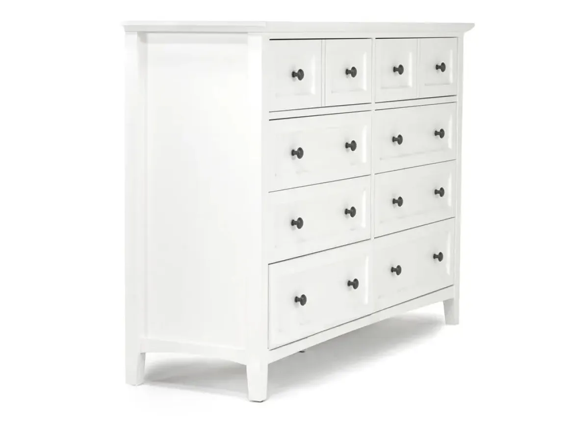 Create a chic and functional bedroom with the Grace Panel Bed, Dresser, Mirror & Nightstand in Snowfall. This set includes a nightstand and dresser for ample storage space. The crisp snowfall finish adds a touch of elegance to your room while the panel headboard provides sturdy support for countless nights of peaceful sleep.Product Details:• Includes 1 nightstand, 1 dresser, 1 mirror, and frame for bed• Made from durable solid wood for lasting quality • Classic panel headboard design for a timeless look