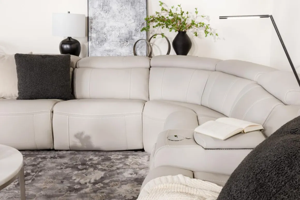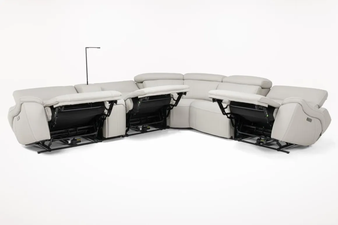 Stretch out and settle in with the Imperial 6 Piece 2 Power Sectional w/ 2 Power Armless Recliner in Blanca Light Gray Leather—a spacious, family-friendly centerpiece designed for modern comfort. This sectional features dual power reclining with head and foot adjustability, so everyone can find their perfect position. The two armless recliners blend seamlessly into the layout, offering extra seating without sacrificing style. Wrapped in soft, light gray leather, the look is clean and contemporary, ideal for open-concept living rooms or cozy family dens. Whether you’re hosting guests or enjoying a quiet evening, this sectional delivers comfort, convenience, and timeless appeal.