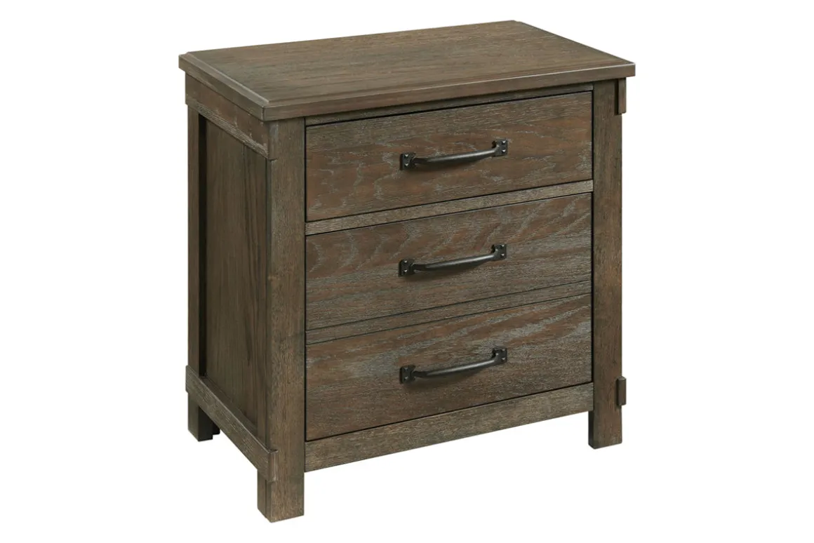 Make your room feel complete with the Jack Nightstand in Walnut. With three drawers for storage and a flat slab top surface that is just right for a lamp, your phone, and some books to read, you can make your room more functional. The walnut finish shows off the woodgrain for a look that is both modern and timeless. The bedroom you will love to come back to is just waiting for the finishing touch of a perfect nightstand. Product Details: • Side mounted ball bearing drawer glides move smoothly • Short square legs are stable • French dovetail drawer joins hold firm • Rubberwood solids and oak veneers create lasting good looks