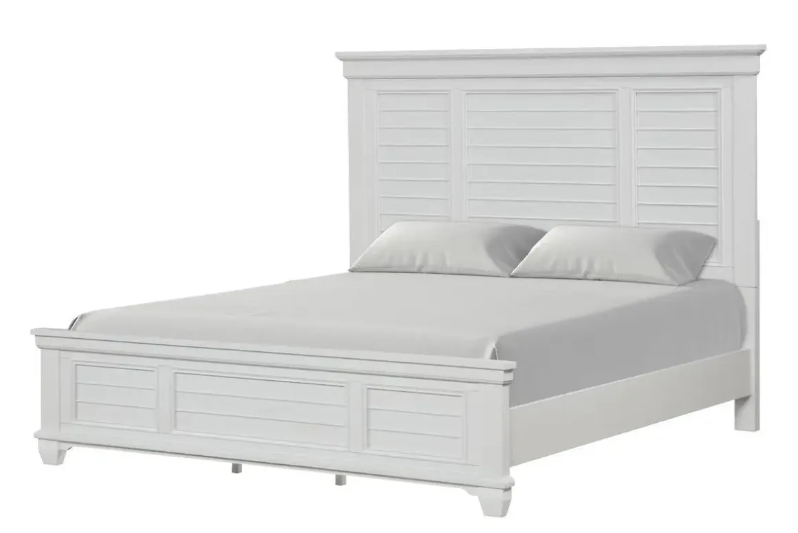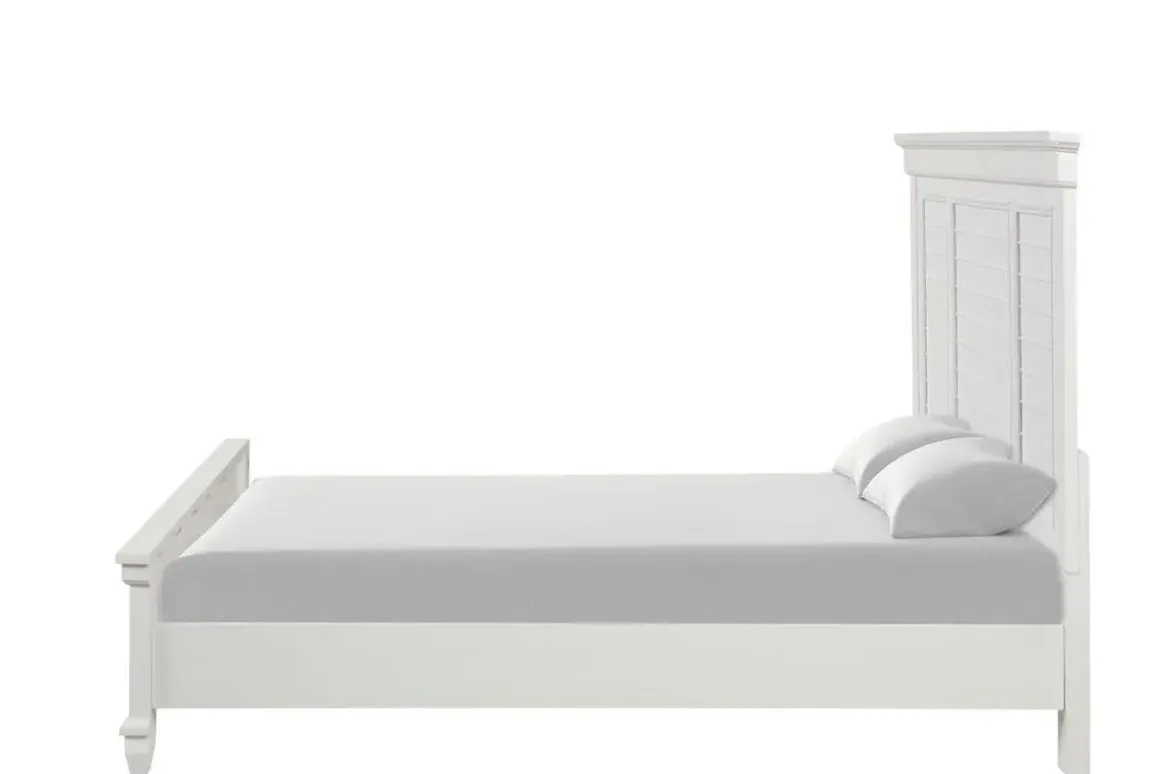 Embrace tranquility with the Jamestown Panel Bed in Gray, Queen. This bed frame, finished in a calming gray mist, exudes a sense of serenity that will melt away the day’s stresses. The clean lines and paneled headboard create a timeless silhouette that whispers quiet sophistication, inviting you to unwind and drift off to peaceful slumber. Product Details: • Crafted from acacia solids and oak veneers • Louvered headboard and footboard design • Blend of classic charm and practical design