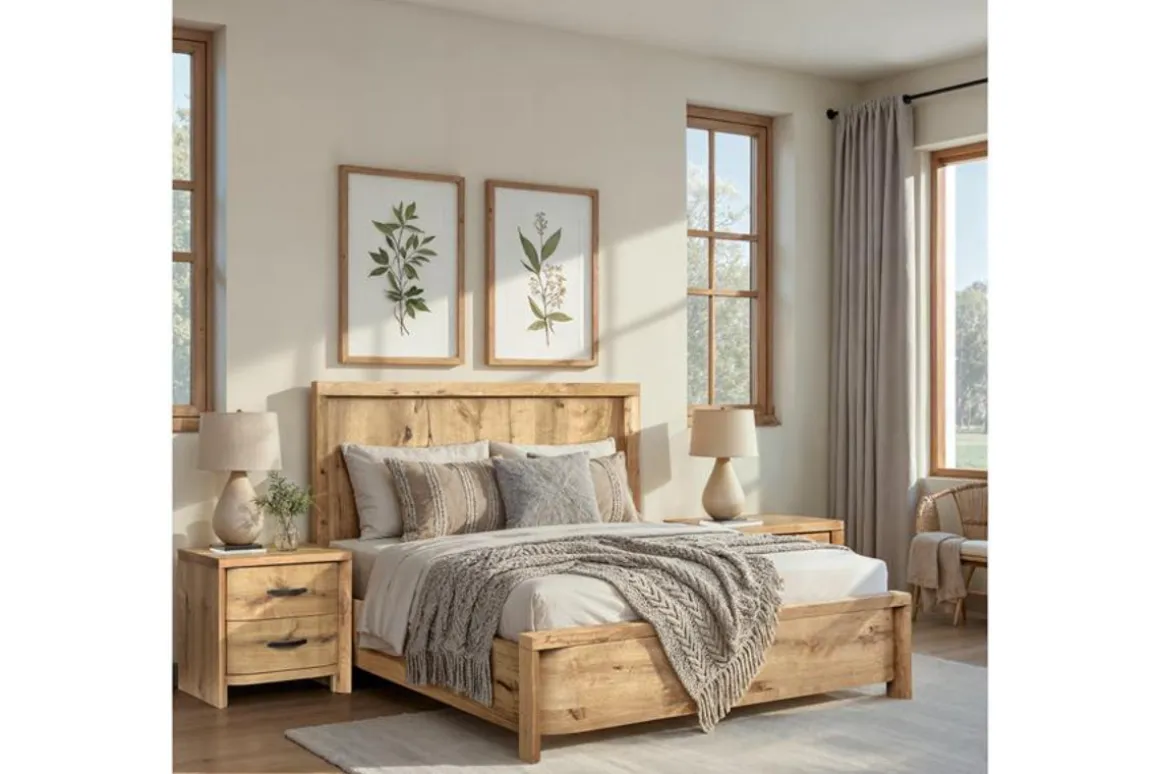 • Warm honey wheat finish and rustic styling complement farmhouse, cottage, and transitional bedroom decors