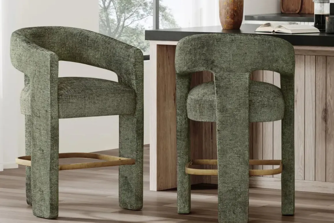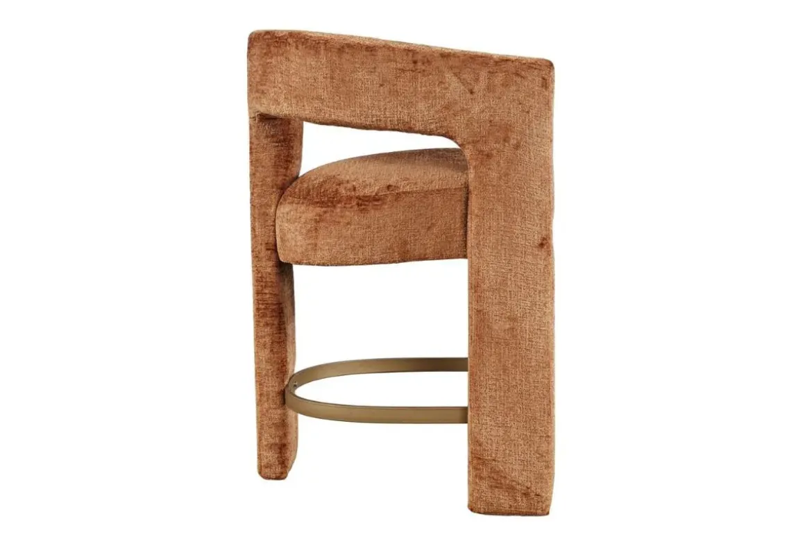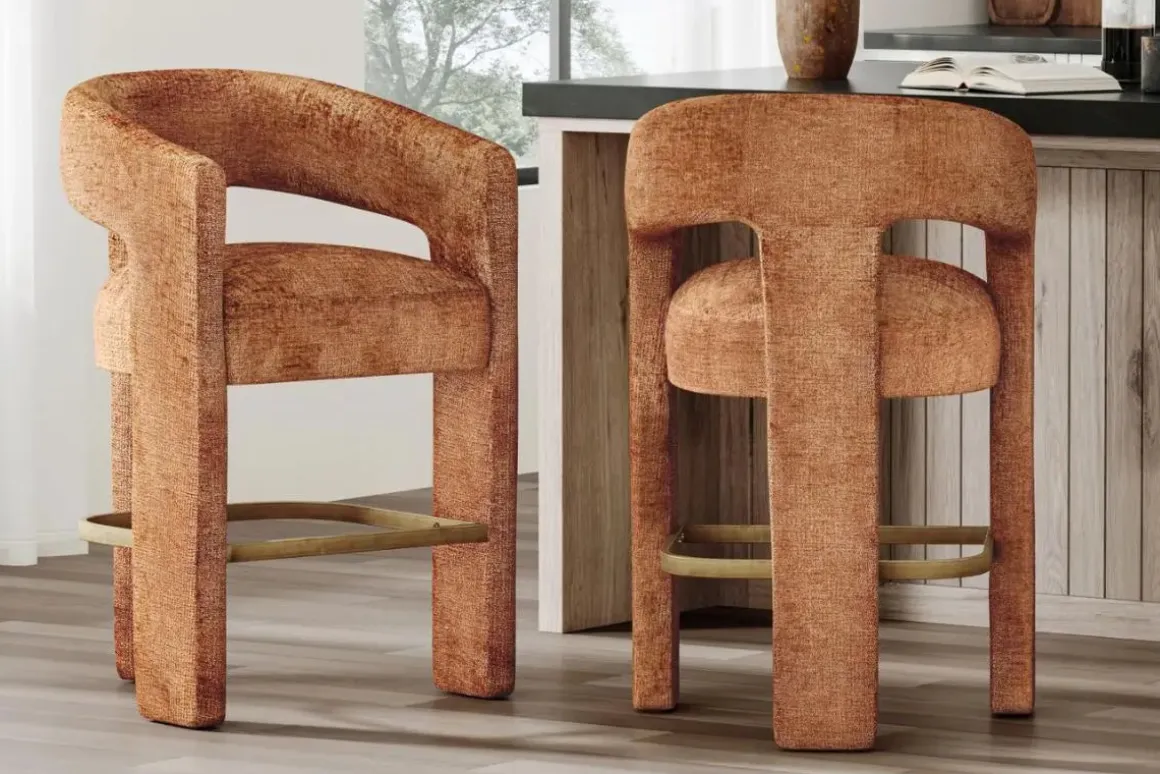 Add a touch of warmth with the Leslie Upholstered Counter Height Stool in Rust, a tasteful mix of modern shape with classic texture. Made with comfort and style in mind, this stool is great for meals and drinks at the counter or for placing in the corner of a nook. The earthy rust color adds warms and color to any room while the three-leg design is a unique and modern design that fits into many traditional-modern styles.