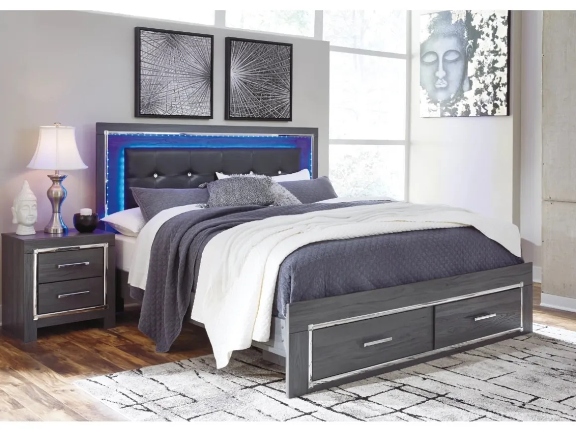 Reminiscent of Hollywood glamour of yesteryear, the Lodanna Full Storage Bed interprets luxury in a decidedly modern way. Sumptuous details include button-tufted upholstery, faceted faux crystals and chrome-tone accents beautifully lit by LED lights enhanced with remote-controlled settings for color and brightness.