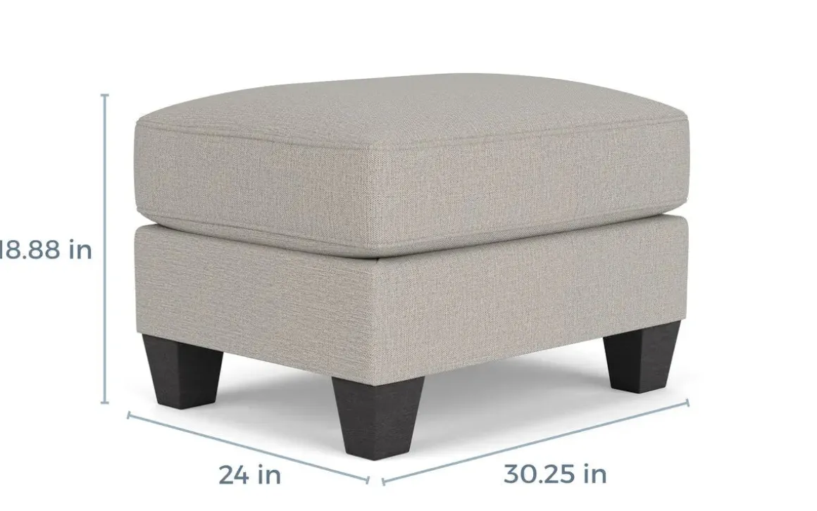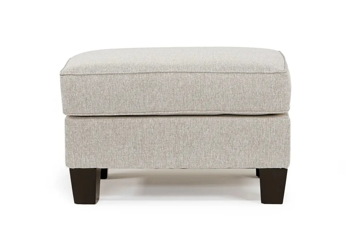 If a sleek new style is what you desire, look no further than the Lucy Ottoman in Splash Linen. With its clean lines and a decidedly contemporary profile, this charming ottoman features flat woven upholstery with plump cushioning. Its wood and spring combination design make it sturdy and comfortable. So, relax and put your feet on this lovely piece that works well in any space.