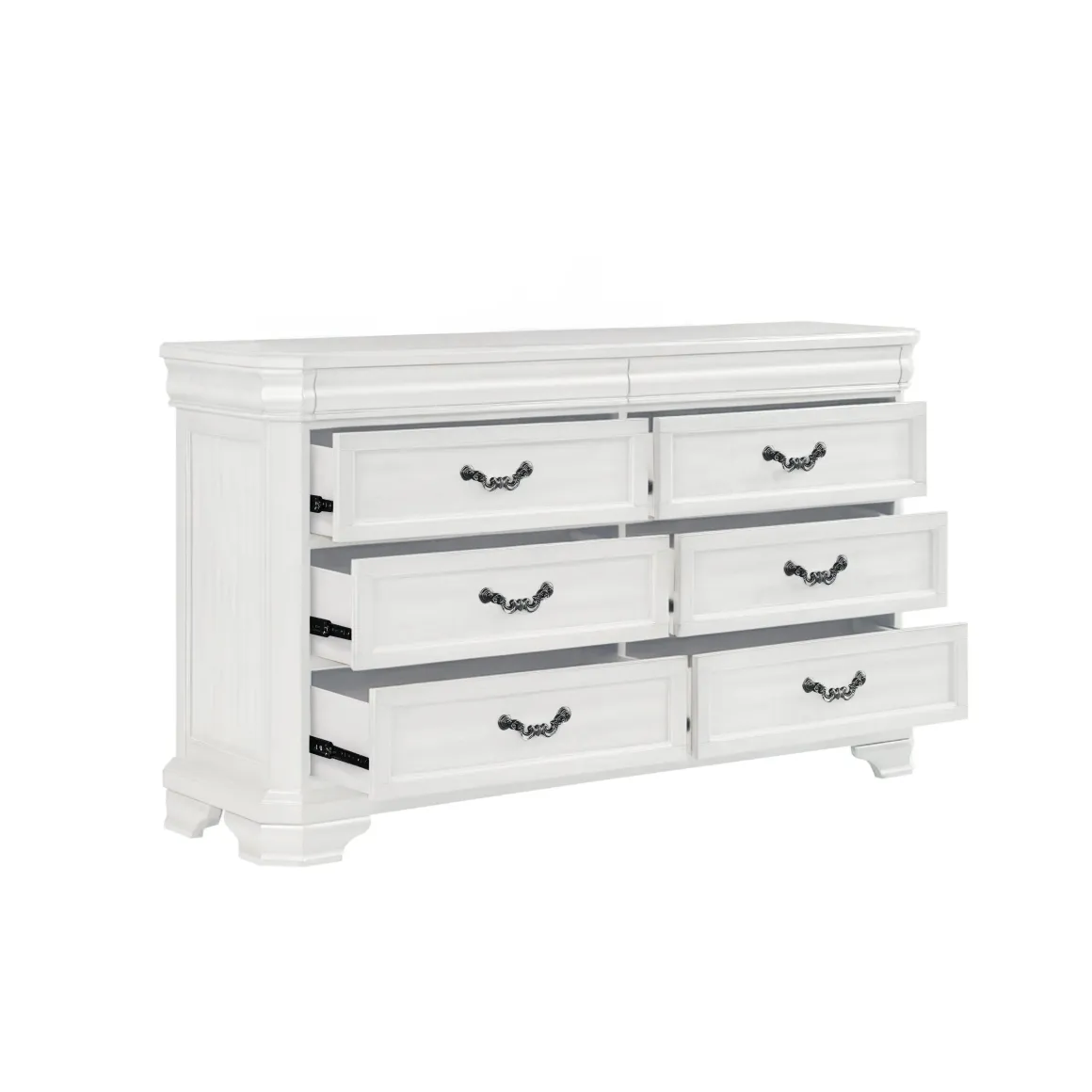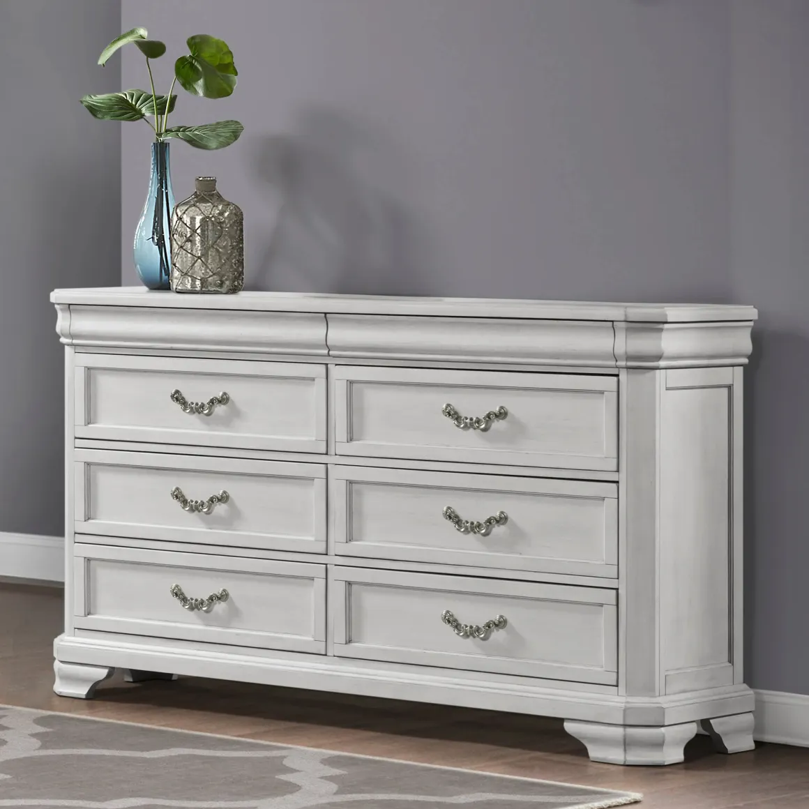 Introducing the Lyndhurst Dresser in Walnut Brown—a blend of timeless elegance and practical functionality. Crafted from solid Acacia, Acacia veneers, and manufactured wood, this dresser ensures enduring strength and durability. Its rich walnut finish, achieved through a meticulous multi-step process, enhances the wood’s natural beauty with subtle distressing, burnishing, and charcoal glazing. Substantial moldings, bracket feet, and ornate hardware define its masterful style, making it a standout piece in any bedroom. Inside, the dresser boasts six spacious drawers crafted with English dovetail joinery, full extension drawer glides, and finished interiors, ensuring smooth operation and ample storage for clothing. Two discreet velvet-lined drawers are concealed behind top moldings, providing a luxurious touch for delicate items. Additionally, bottom drawers are cedar-lined, offering optimal storage for sweaters. Elevate your bedroom decor with the stately sophistication of the Lyndhurst Dresser.