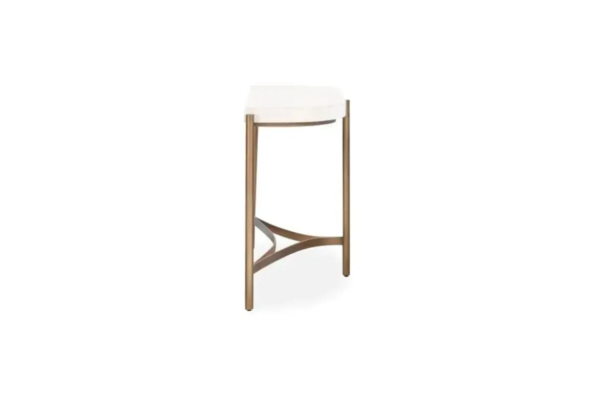 The Lyon Console Table in Ivory is the perfect blend of modern design and practical functionality for any home. With its chic shape and eye-catching ivory color, this console table will effortlessly elevate the style of your living space. The sturdy metal frame and straight brown legs provide stability and durability, while the unique cross-legged base adds a touch of luxury to the design. It also features a beautifully finished slab top, perfect for displaying your favorite decor pieces. Product Details: • Made from high-quality concrete, metal, and steel materials • The cross-legged table base design adds a sophisticated flair to the overall look • The slab top provides ample space for showcasing decor or for practical use