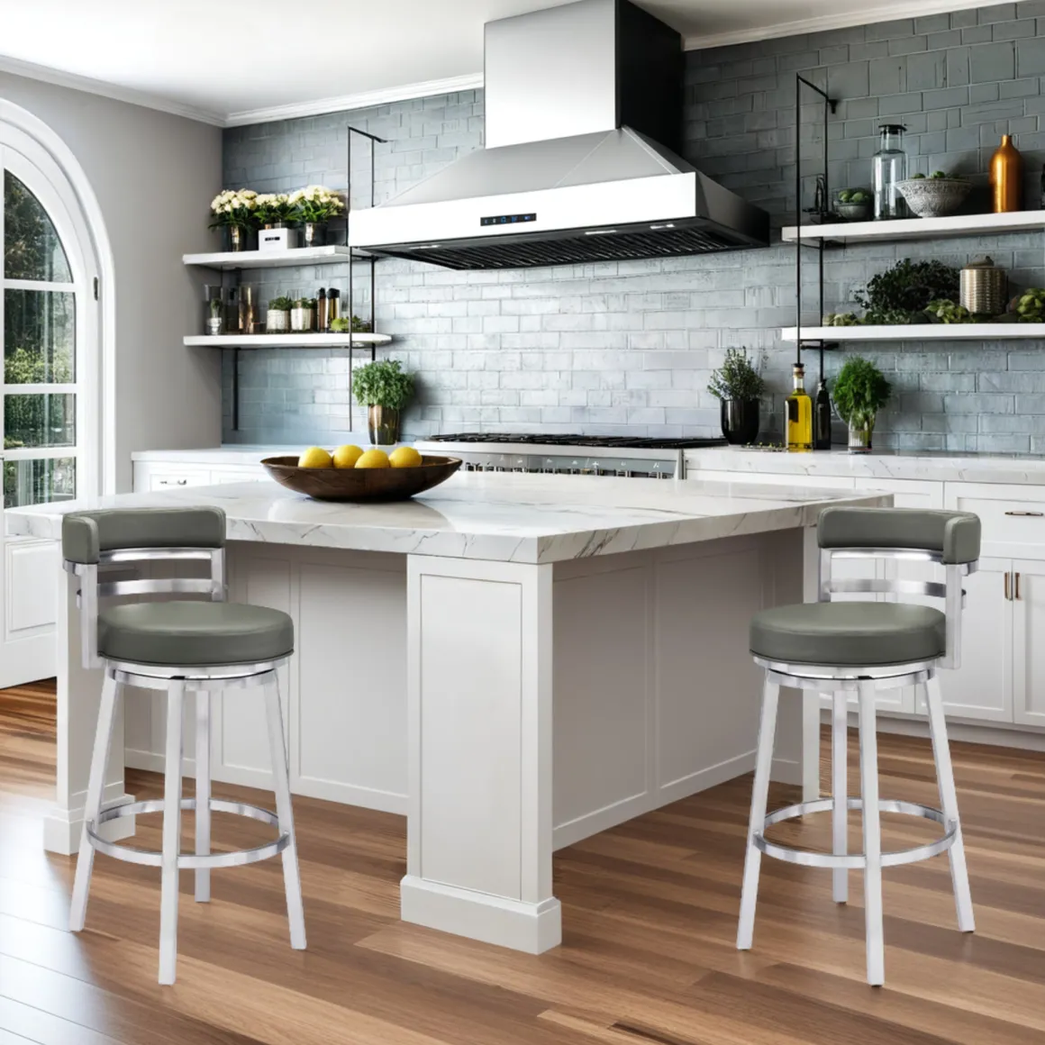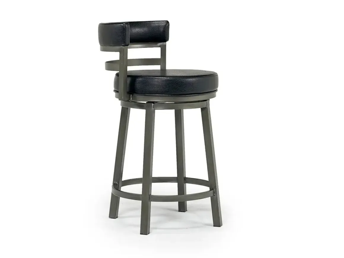 Highly recommended for any modern dining room, the Madrid Counter Height Chair in Mineral and Black, Swivel is a piece that showcases stunning craftmanship and will quickly become the favorite seat in your house. A swept back, bow of a back rest holds your lower back in perfect lumbar support. Sleek and sturdy metal legs are the epitome of sophistication and practicality. The stool has a perfectly placed foot rest that adds to the comfort.