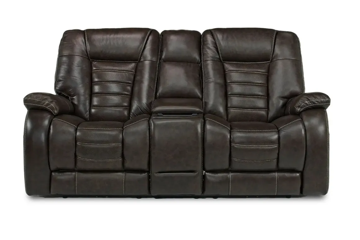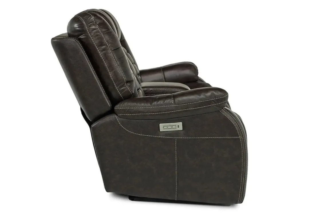 Malibu 3 Power Console Loveseat W/ Wireless Charger In Chocolate Leather