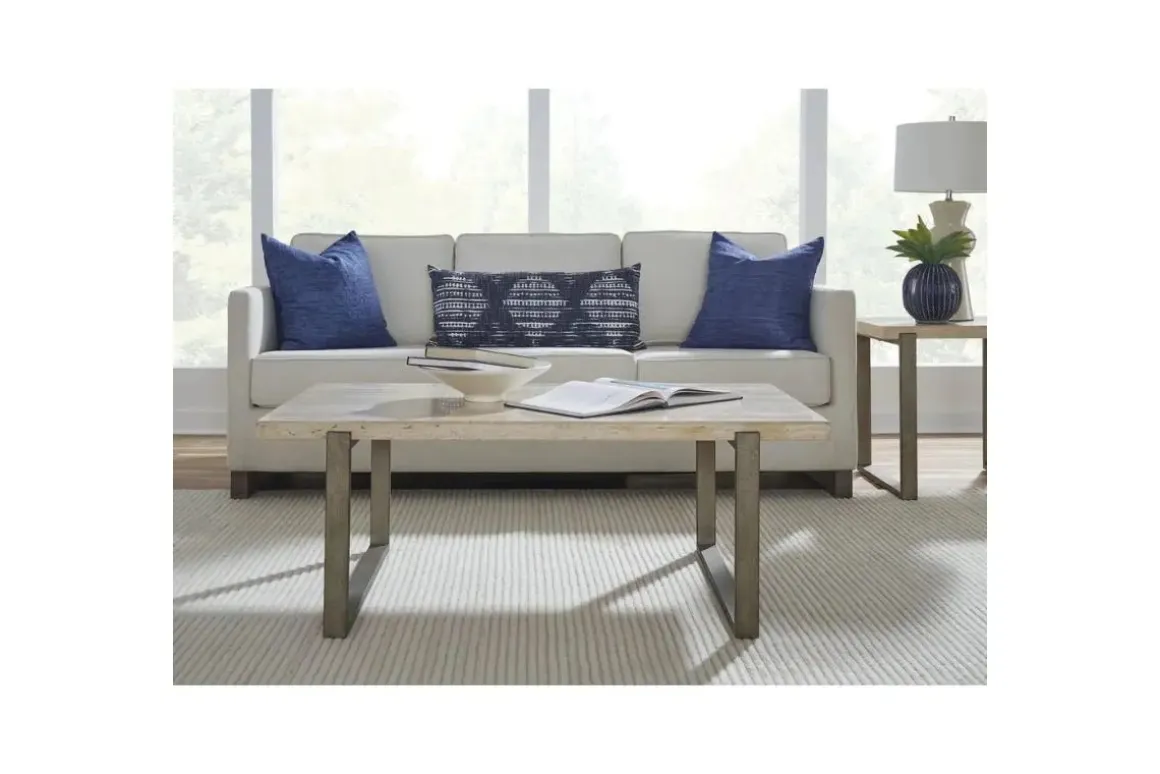 Enhance your home decor with the perfect blend of functionality and chic design that the Mario Coffee Table in Travertine brings to your space. The travertine color is subtle and beautiful while the black metal legs provide a striking contrast, making it a focal point in any room. With its generous dimensions of 48 inches in width, 30 inches in depth, and standing at 18 inches tall, this rectangular coffee table offers ample surface area for your essentials. Product Details: • Straight black metal legs offer stability and visual interest • Slab top for a unique touch • Supported by a sturdy metal trestle base