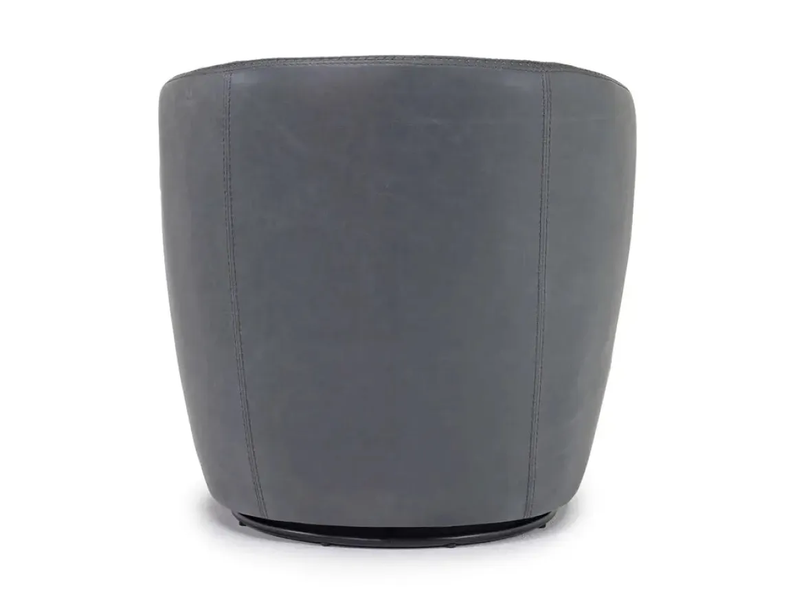 Whether you’re curling up with a good book, engaging in conversation with guests, or simply enjoying a moment of quiet contemplation, the Market Swivel Club Chair in Noce Taupe will enhance your space with both comfort and style. The transitional design effortlessly complements a variety of decor styles, while the 360-degree swivel feature allows you to easily turn and face any direction. The sturdy metal legs in a sleek black finish provide a touch of modern elegance. Product Details: • Sink into the luxurious foam padding of the seat and back • Boasts a warm and inviting Noce Taupe hue • Upholstered in genuine leather