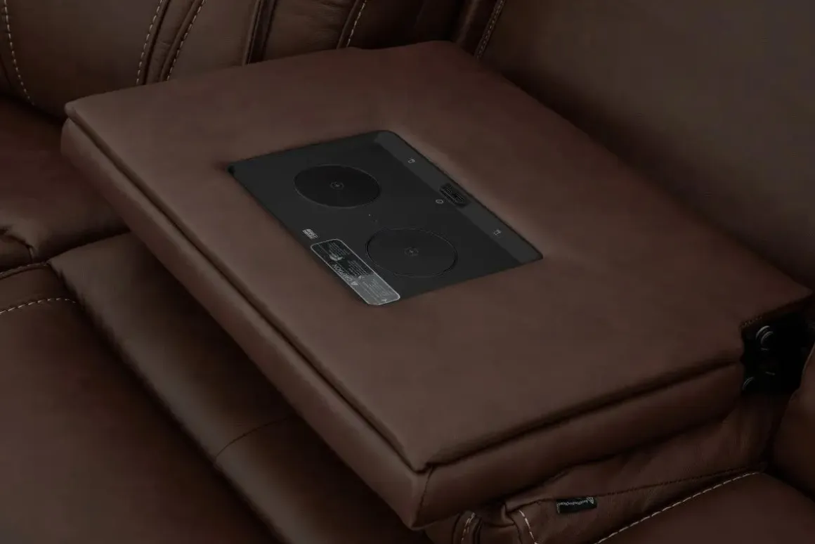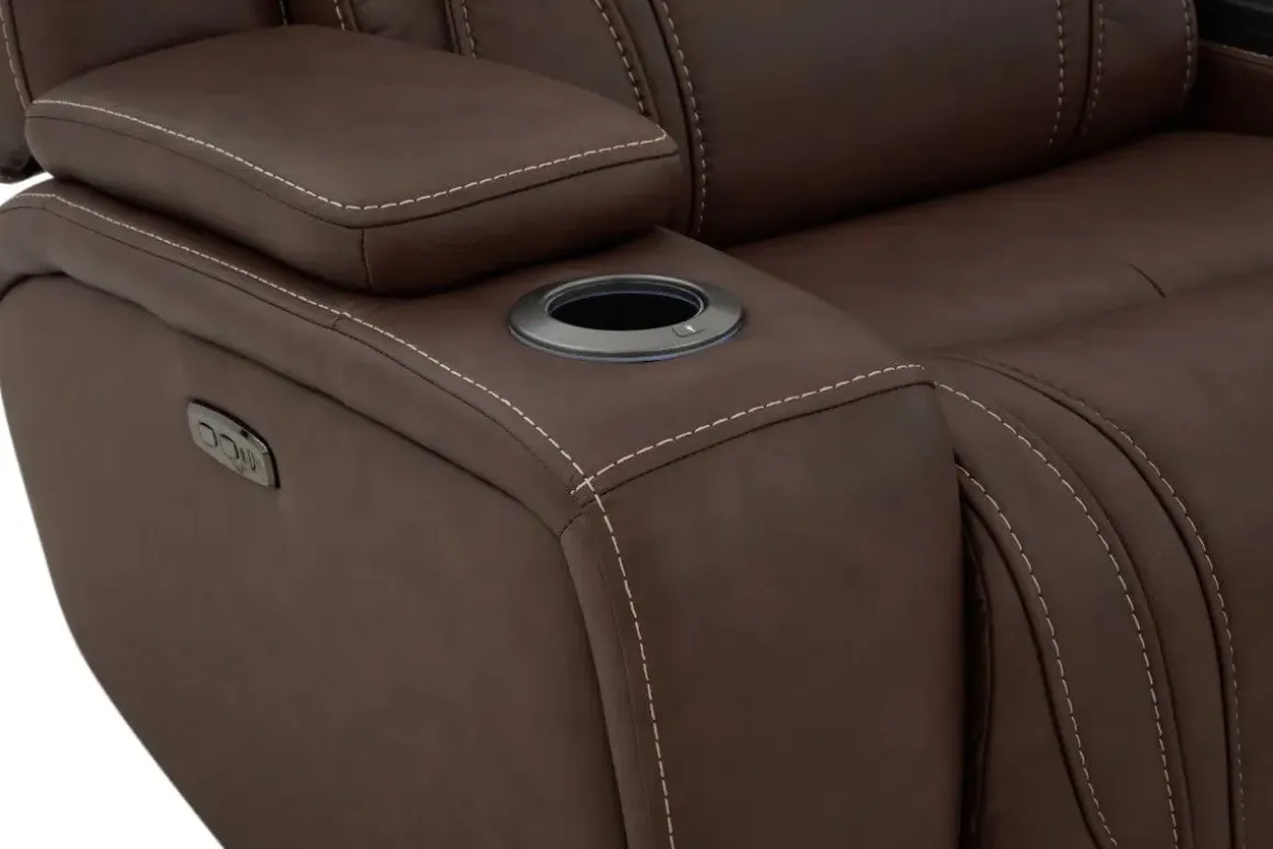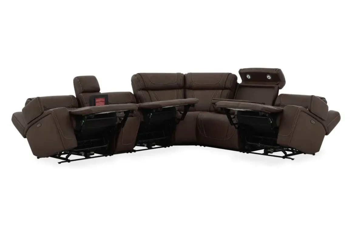 The Max 6 Piece 2 Power Sectional w/ 2 Power Armless Recliner in Aline Timber Leather is built for families who love to relax in style. Wrapped in a rich timber brown leather-fabric blend, this spacious sectional offers dual power reclining with head and foot adjustability across every seat—including two armless recliners that blend seamlessly into the layout. Foam cushions and semi-attached backs provide lasting support, making it ideal for movie nights, game days, or everyday lounging. Its transitional silhouette and earthy tone bring warmth to both casual and refined living spaces.